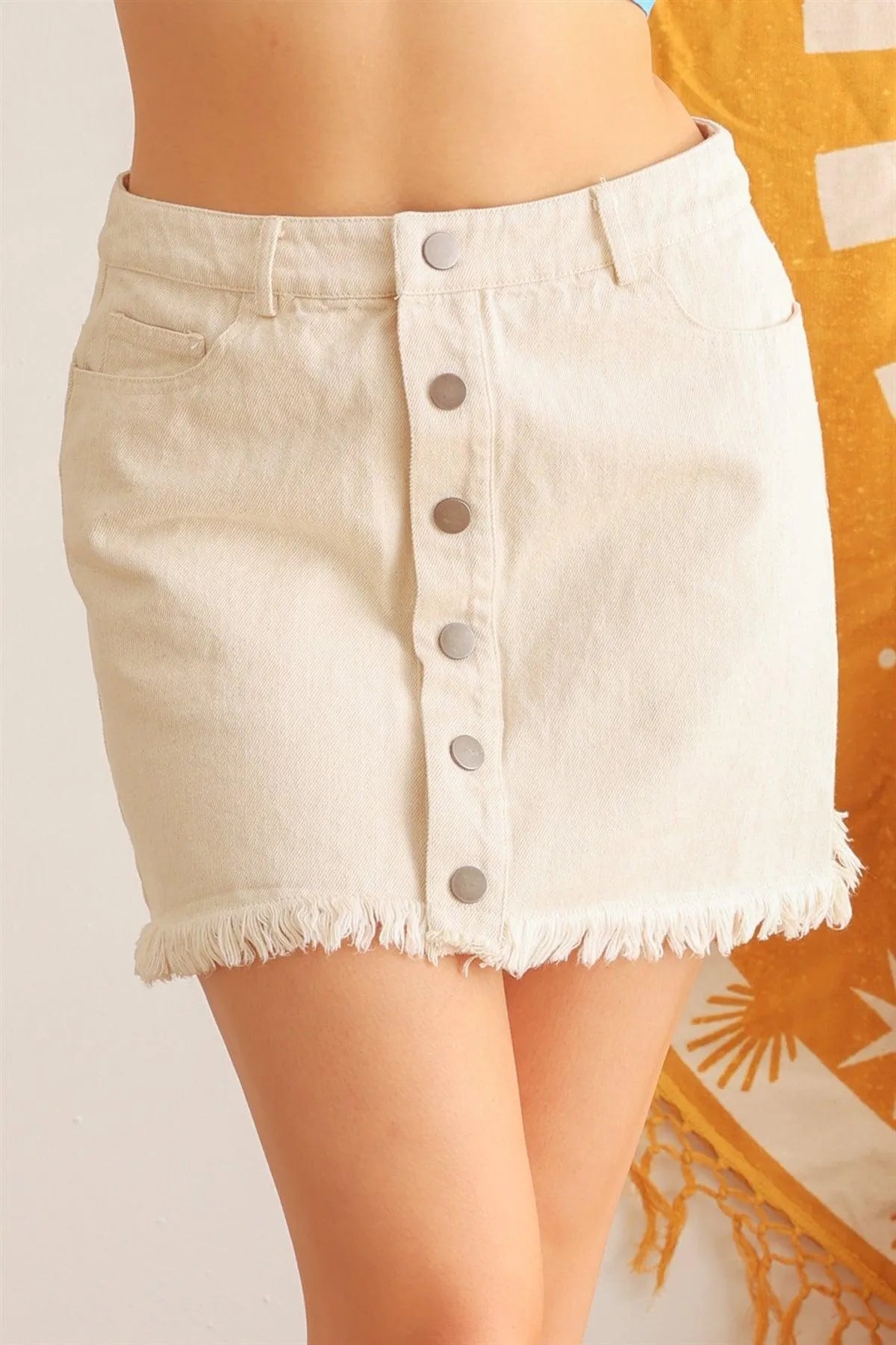 Oatmeal Cotton Button-Up High Waist Raw Hem Mini Skirt /2-2-2