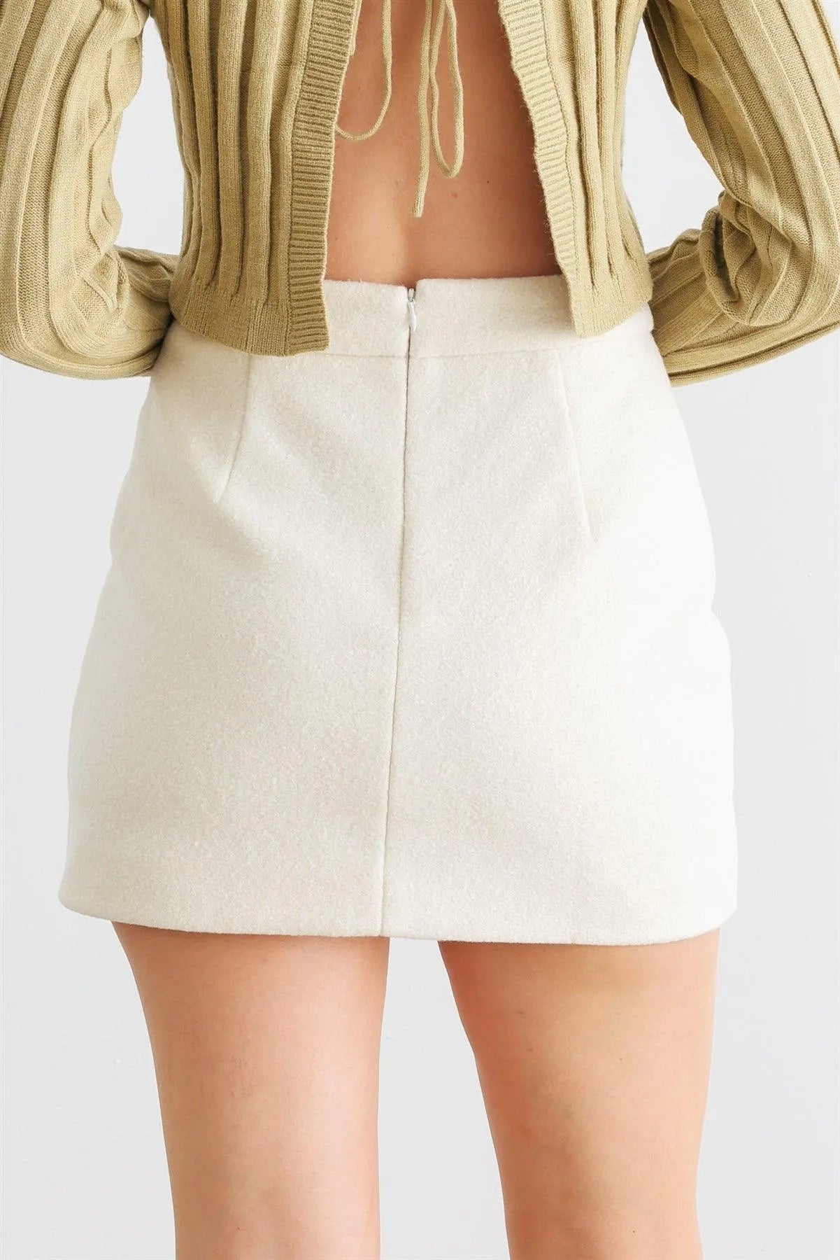 🖤 Item Features: Off-white, solid color, high waisted, back zip-up closure, mini length, non-stretchy, not see through, lined, casual, cute, cozy
