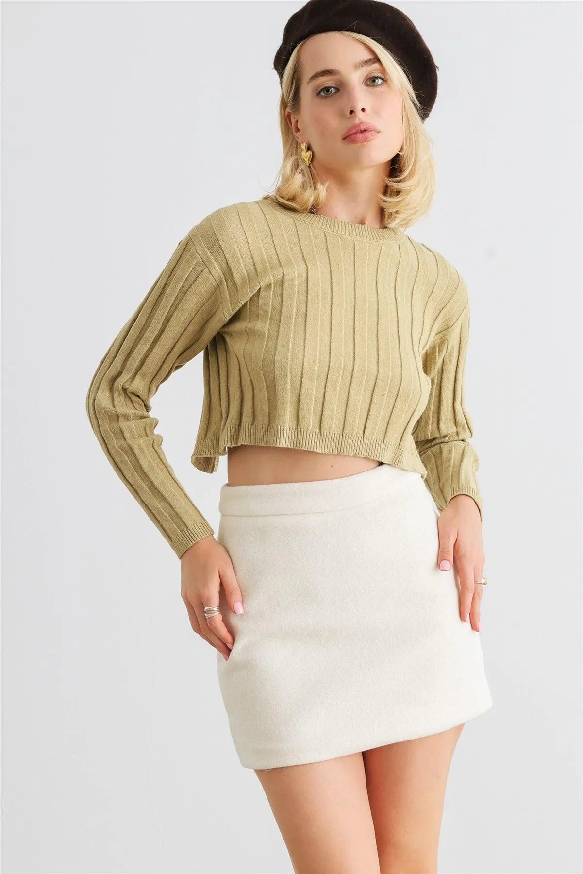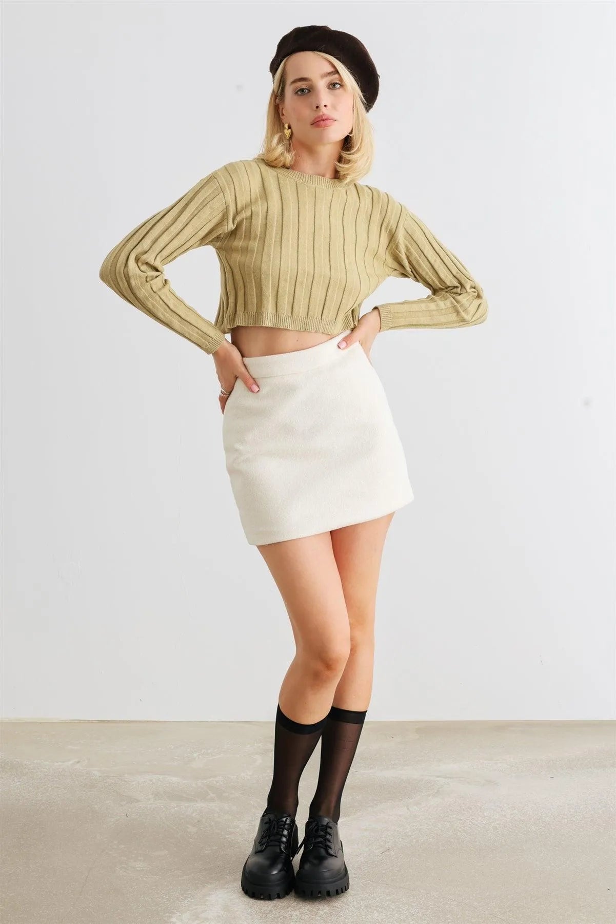 High Waisted Pleated Knit Mini Boutique Sweater SkirtVendor:Chrysanthemum
