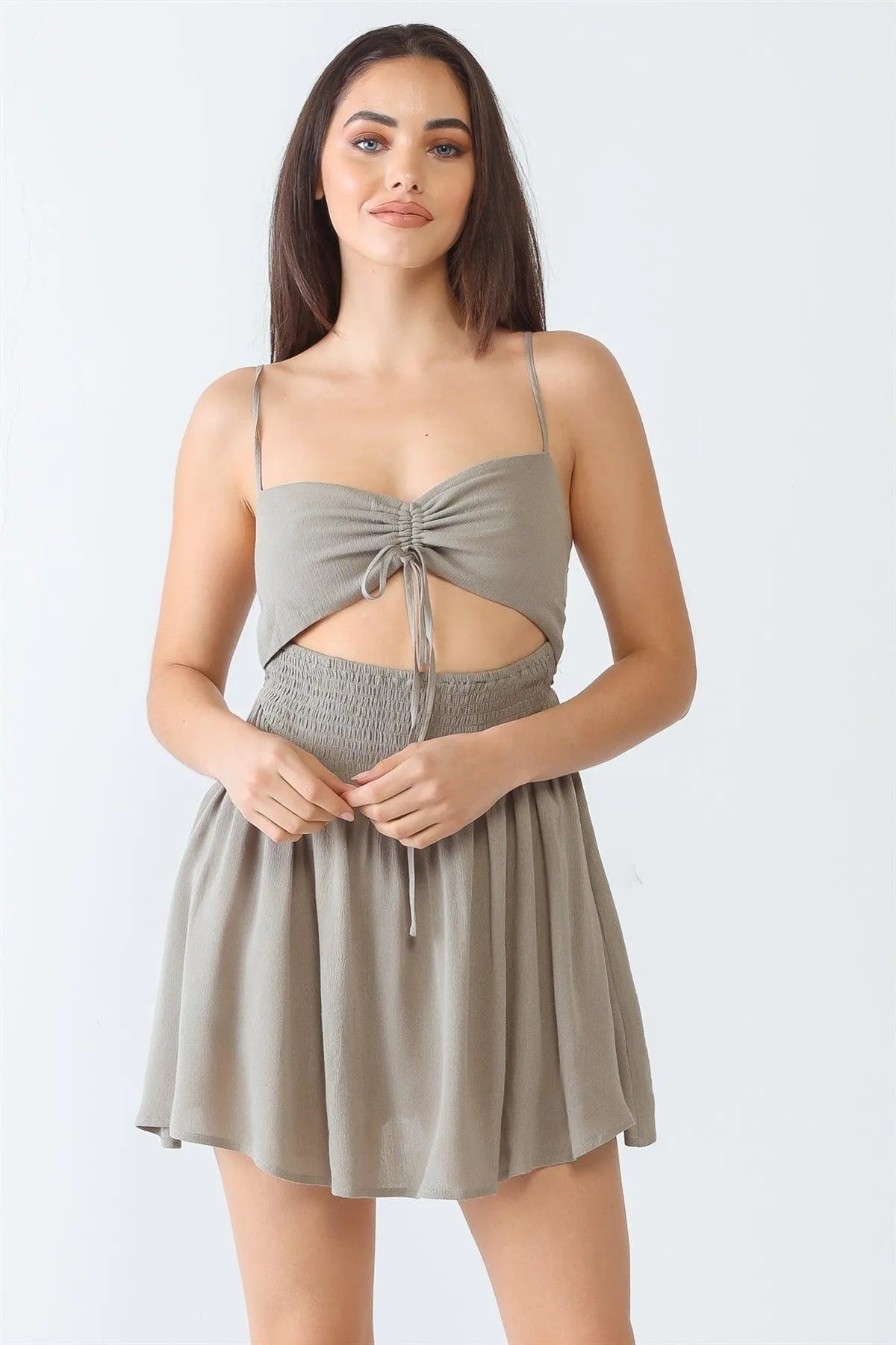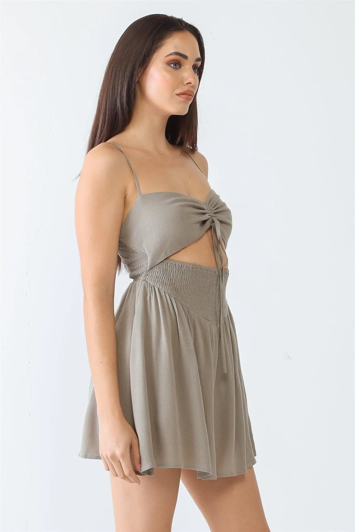 Olive Textured Ruched Smocked Sleeveless Cut-Out Romper /3-2-1