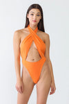 🖤 Item Features: Orange, sleeveless, wrap halter neckline, criss-cross, cut-out style, high leg cut thong, open back, unlined, stretchy, not see through, sexy, hot, festival wear, stylish, spring/summer swimwear