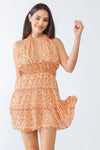 Orange & Yellow Ditsy Print Sleeveless Smocked Flare Hem Mini Dress /3-2-1