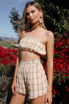 Gingham Strapless Ruched Two-Piece Crop Tube Top and Mini Skirt SetVendor:Mable