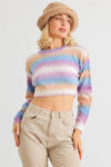 Peach Multi Knit Long Sleeve Open Back Cropped Sweater