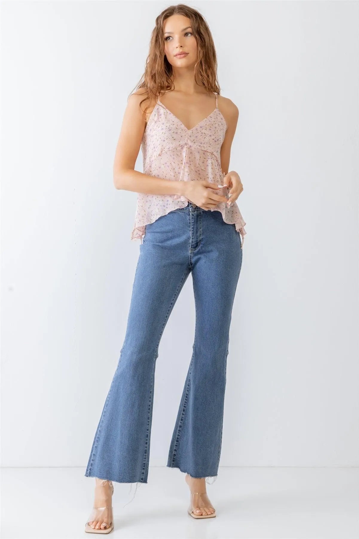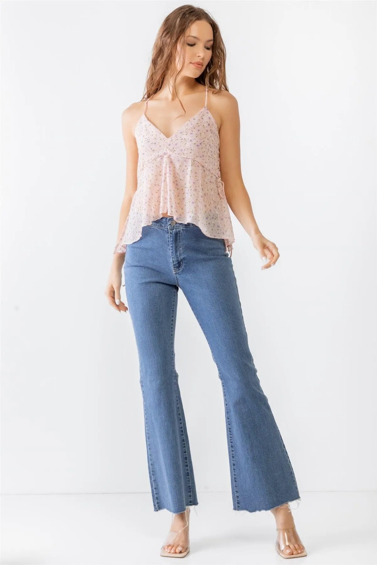 Pink V-Neck Criss-Cross Back Flare Tank Top