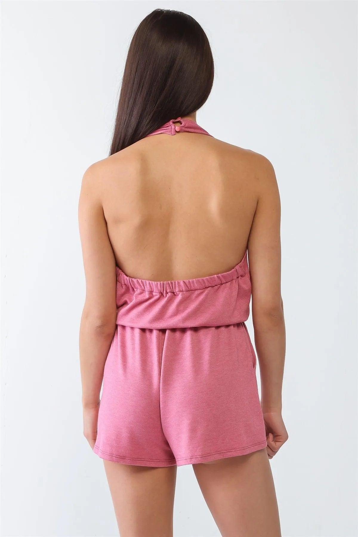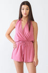 Pink Wrap V-Neck Two Pocket Open Back Romper