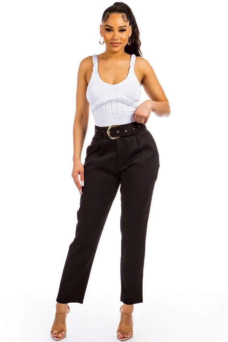 Black Pleated High Waist Four Pocket Pants /2-2-2