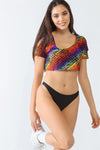 Rainbow Printed Shine Cut-Out Short Sleeve Crop Top