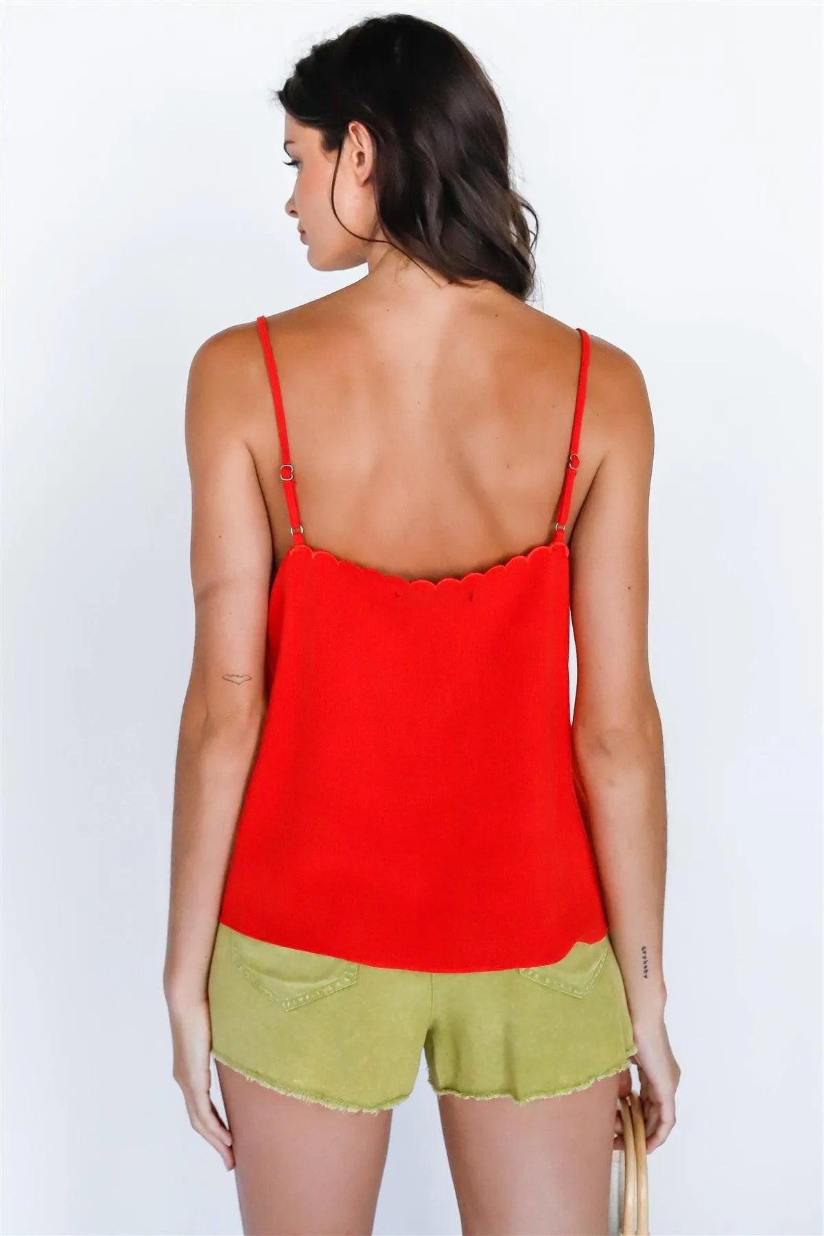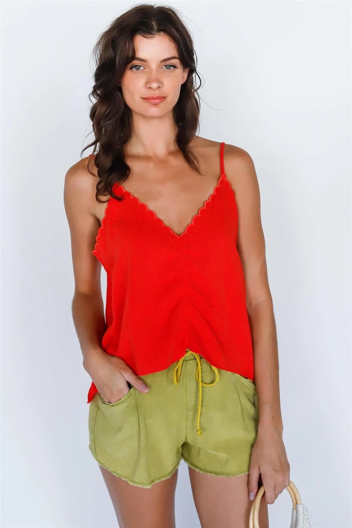 Red Contrast Trim Ruched Detail Cami Top /1-2-2-1