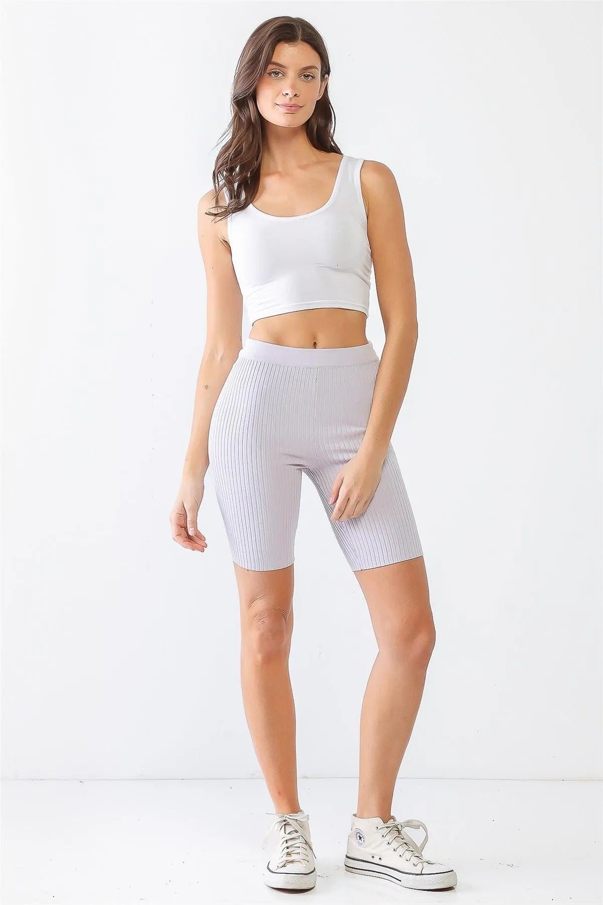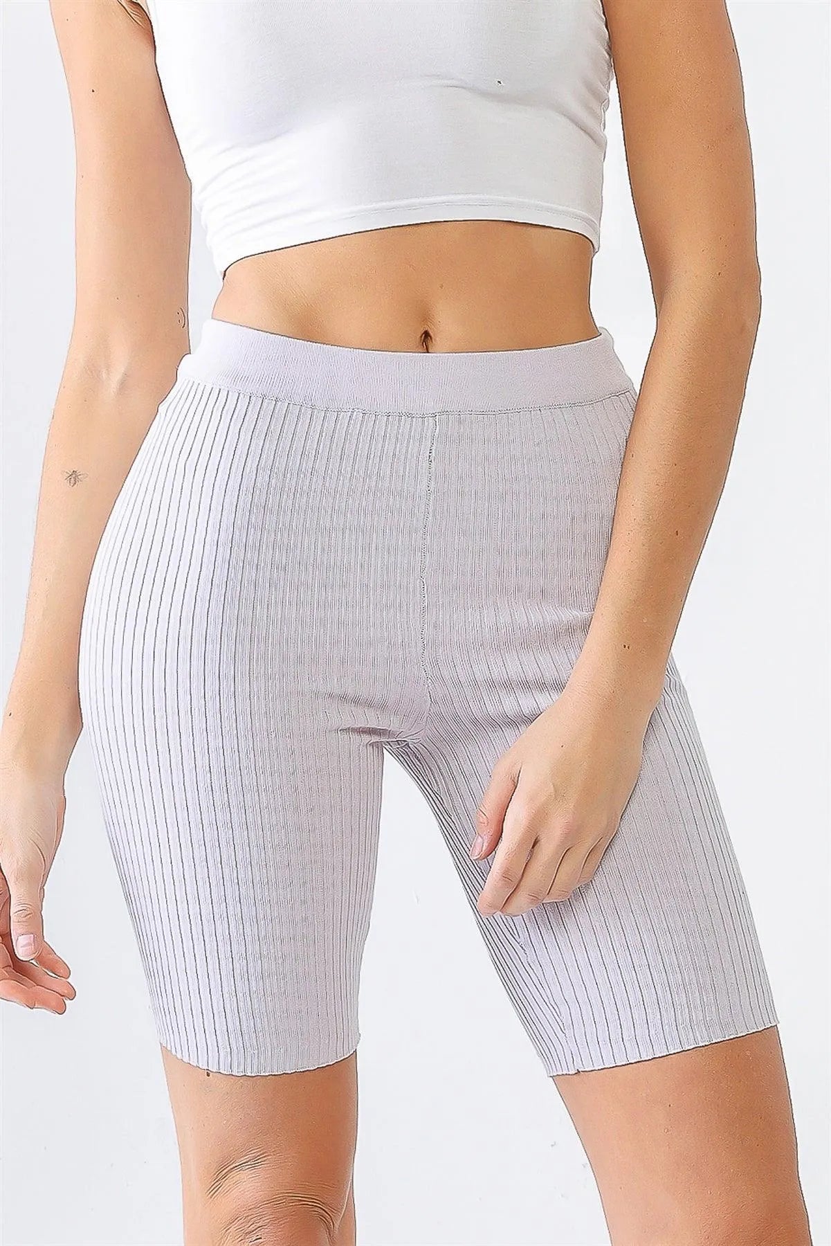 Experience ultimate comfort and style with our Light Purple Ribbed High Waist Slim Fit Stretchy Shorts. These shorts are designed with a high waist to accentuate your curves, and their stretchy material allows for a perfect slim fit. Perfect for any occasion, these shorts provide both style and comfort.