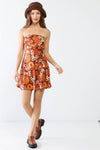 Rust Floral Print Satin Strapless Mini Dress /1-2-2-1