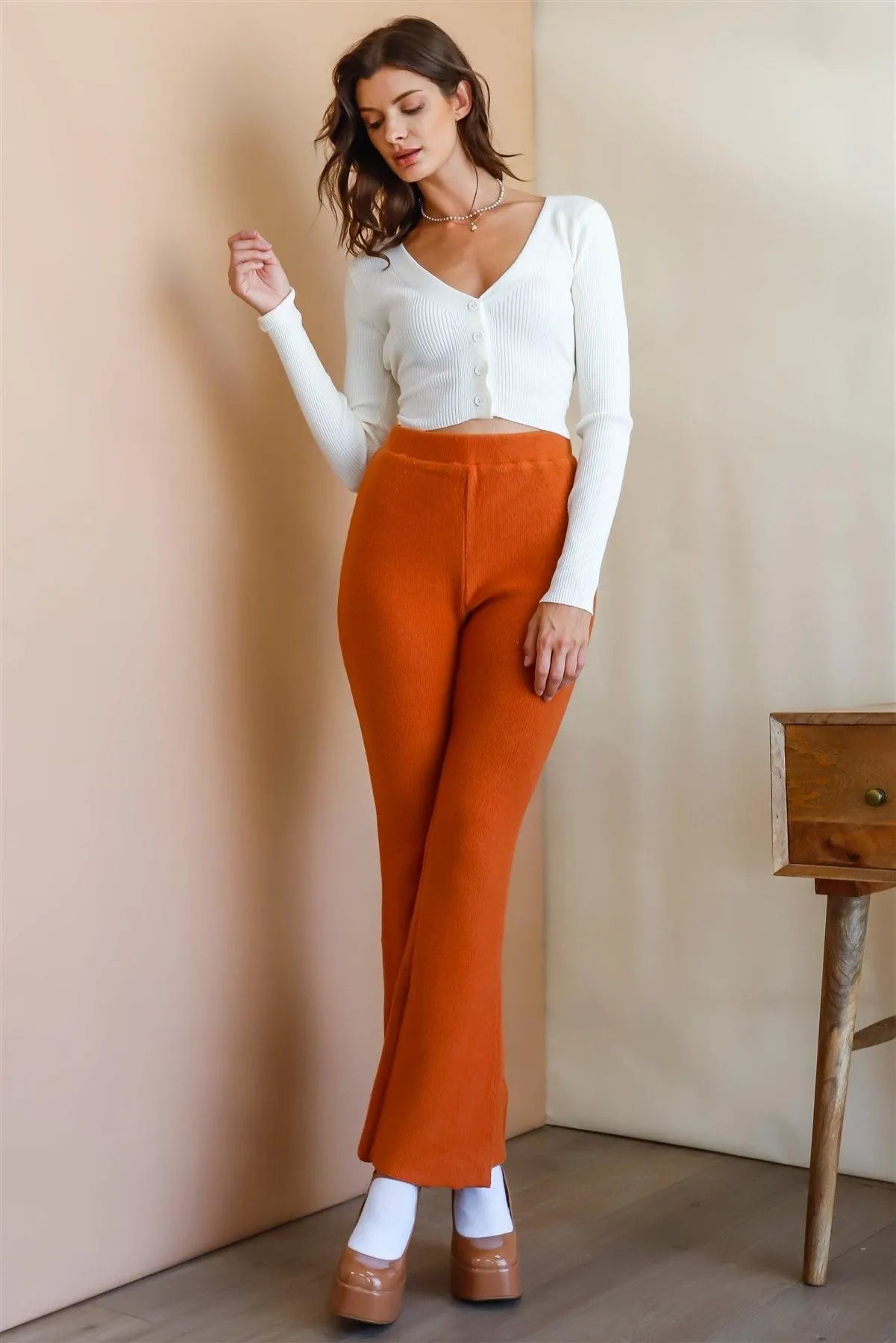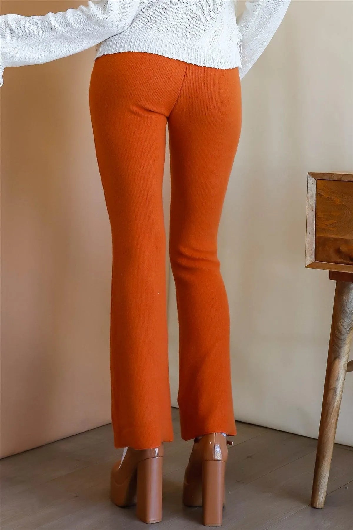 Rust Knit High Waist Flare Leg Pants /3-2-1
