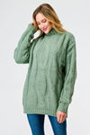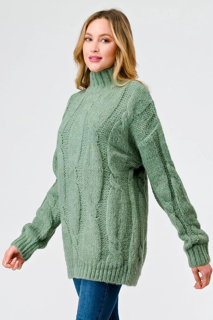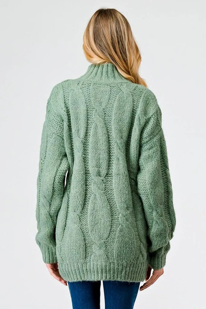 Sage Cable Knit Turtle Neck Long Sleeve Sweater /2-2-2