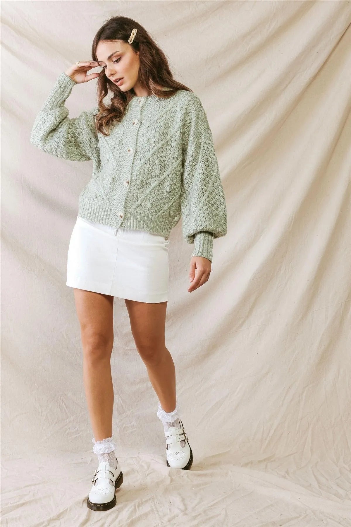Sage Knit Button-Up Long Sleeve Sweater Cardigan /2-2-2