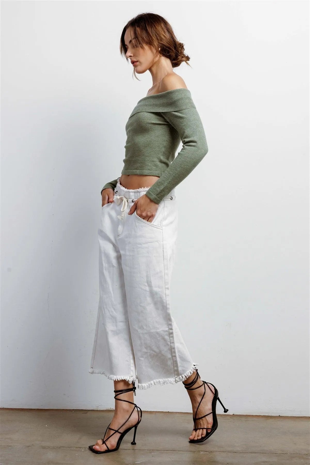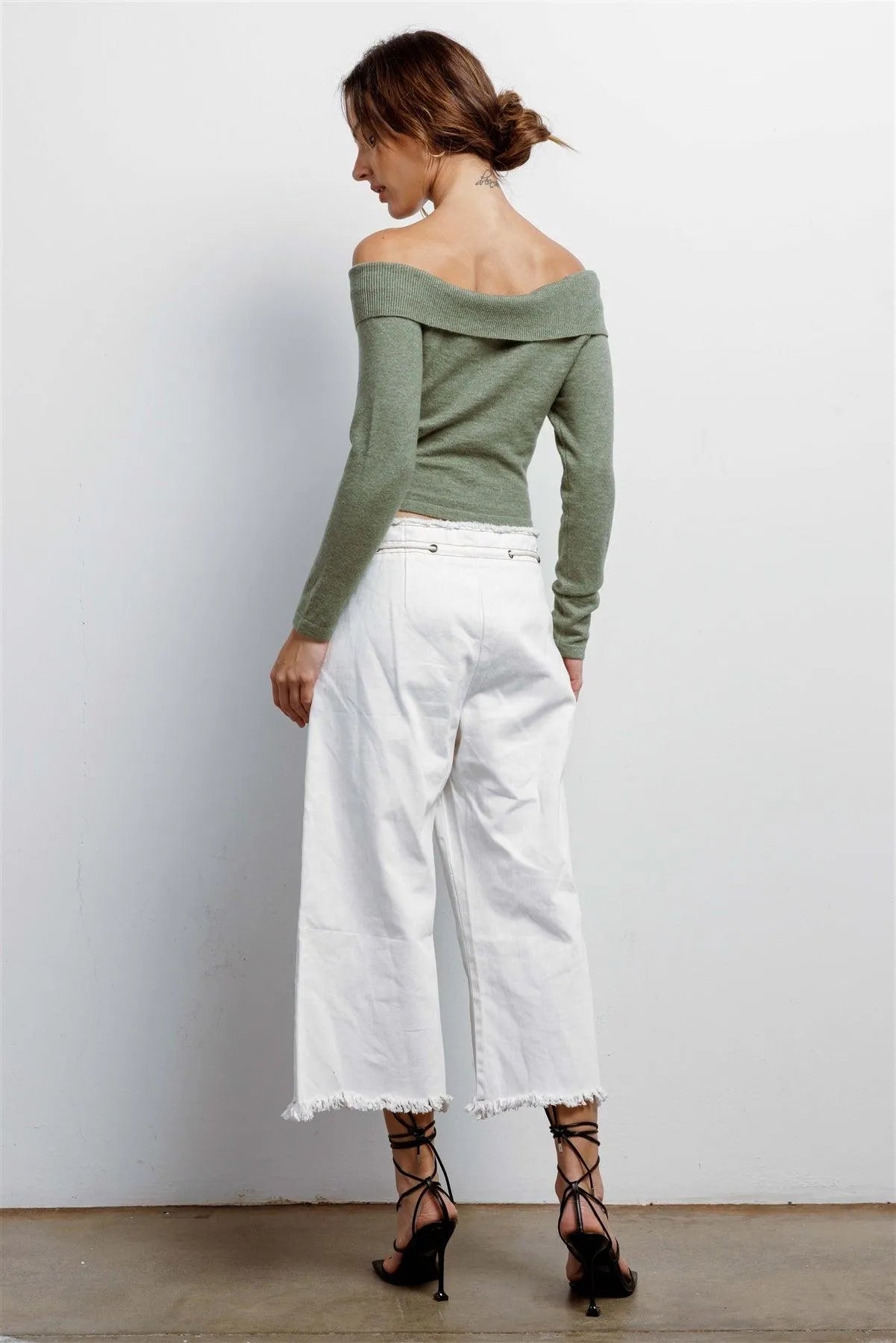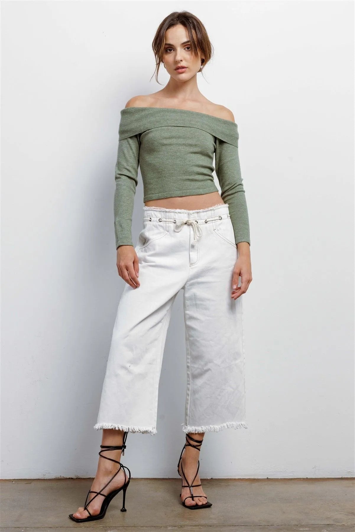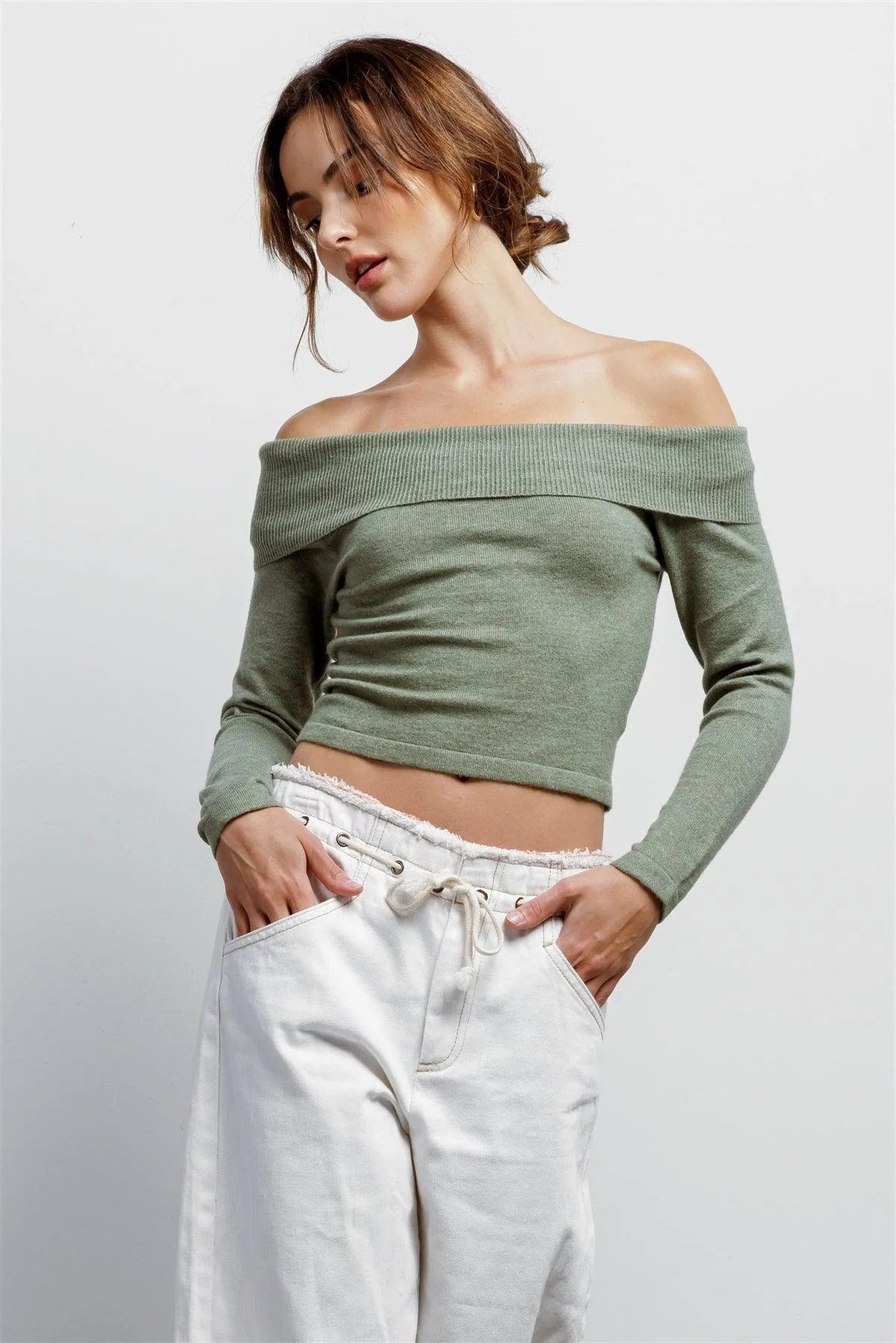 Sage Knit Off-The-Shoulder Long Sleeve Top /3-2-1