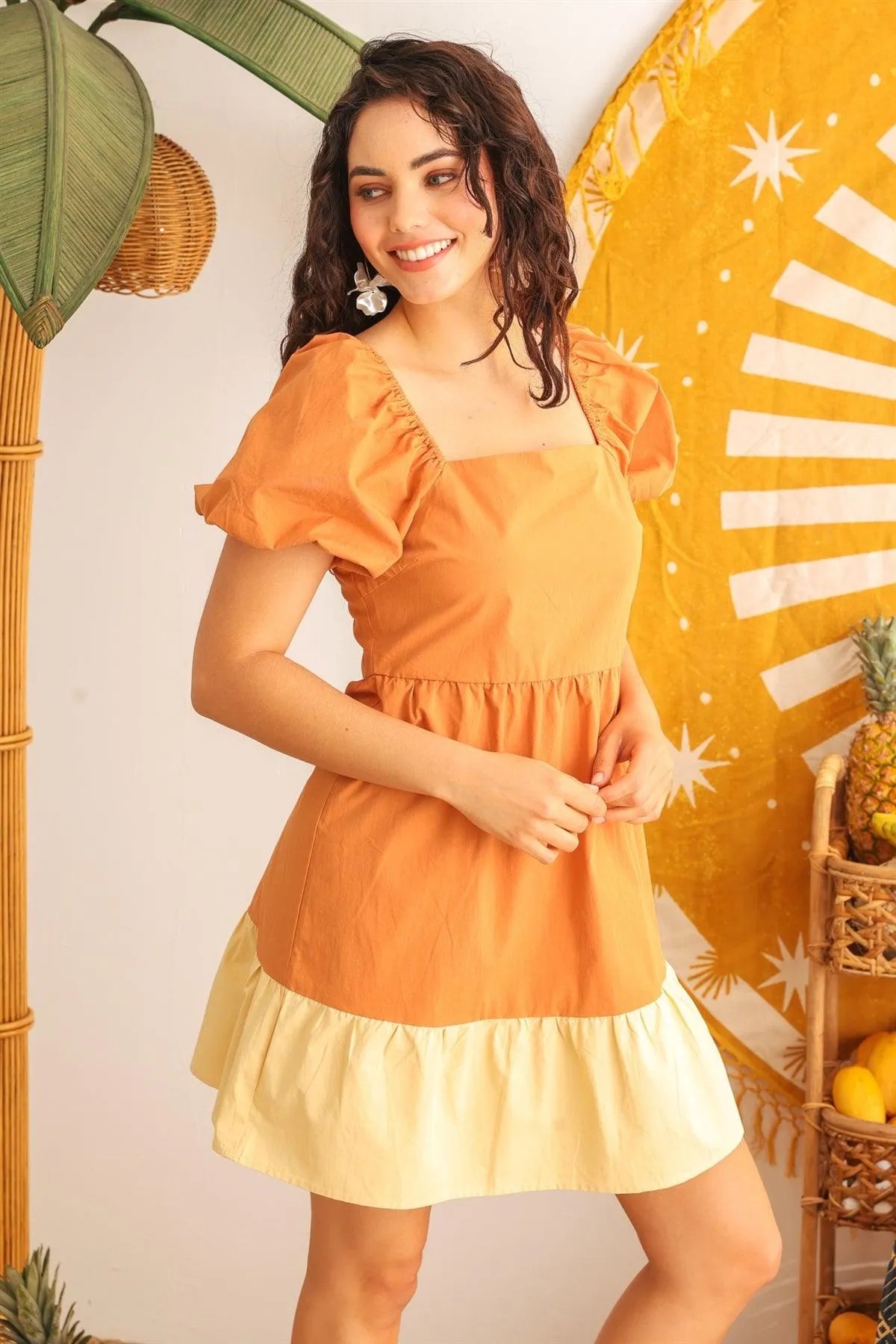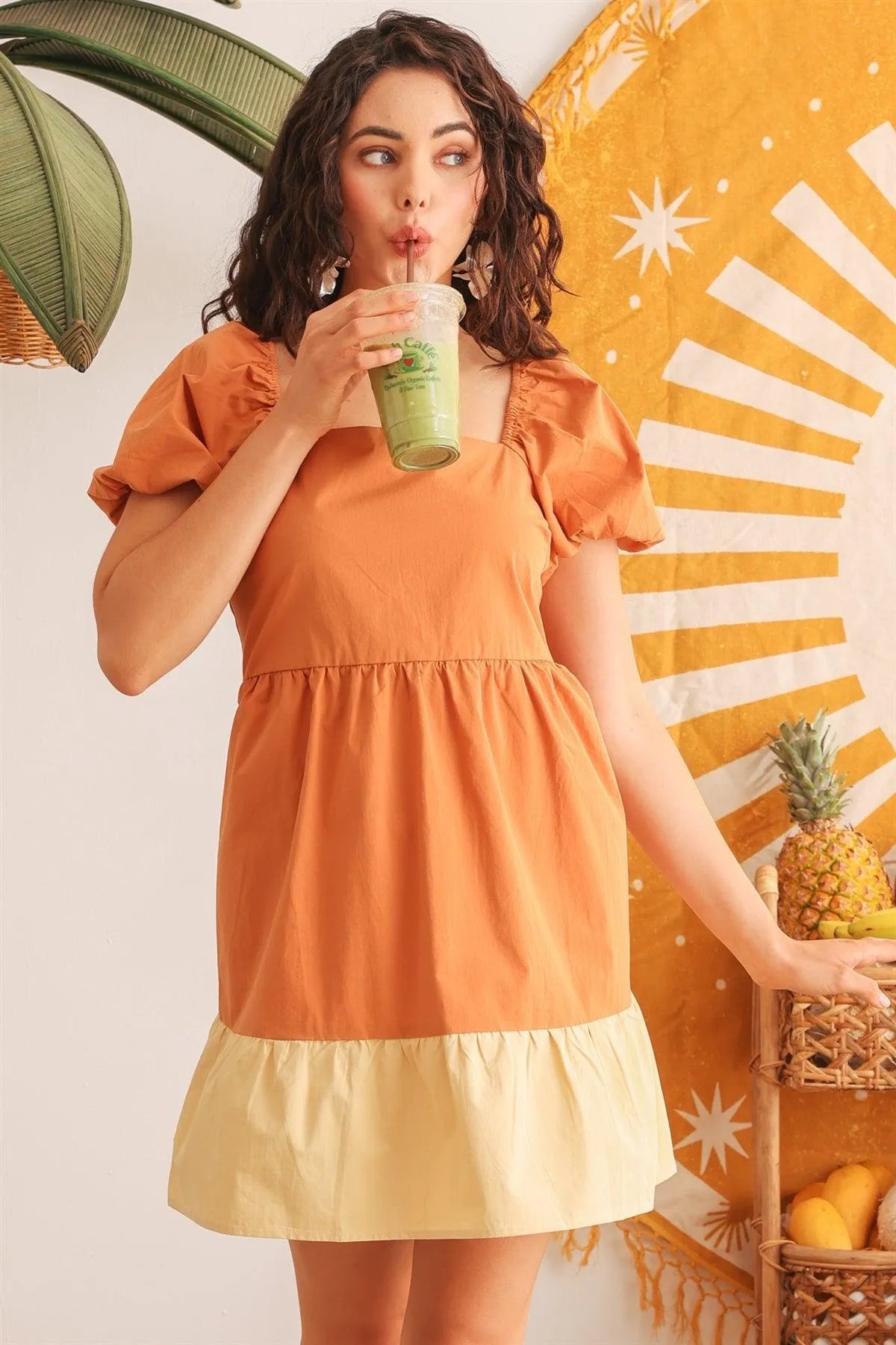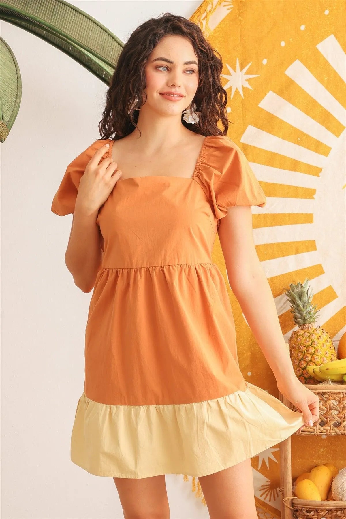 🖤 Item Features: Salmon & ivory hem, solid color, cotton material, square neckline, puff short sleeves, back hidden zip-up closure, mini length, non-stretchy, unlined, cute, stylish, trendy, must-have, cool