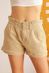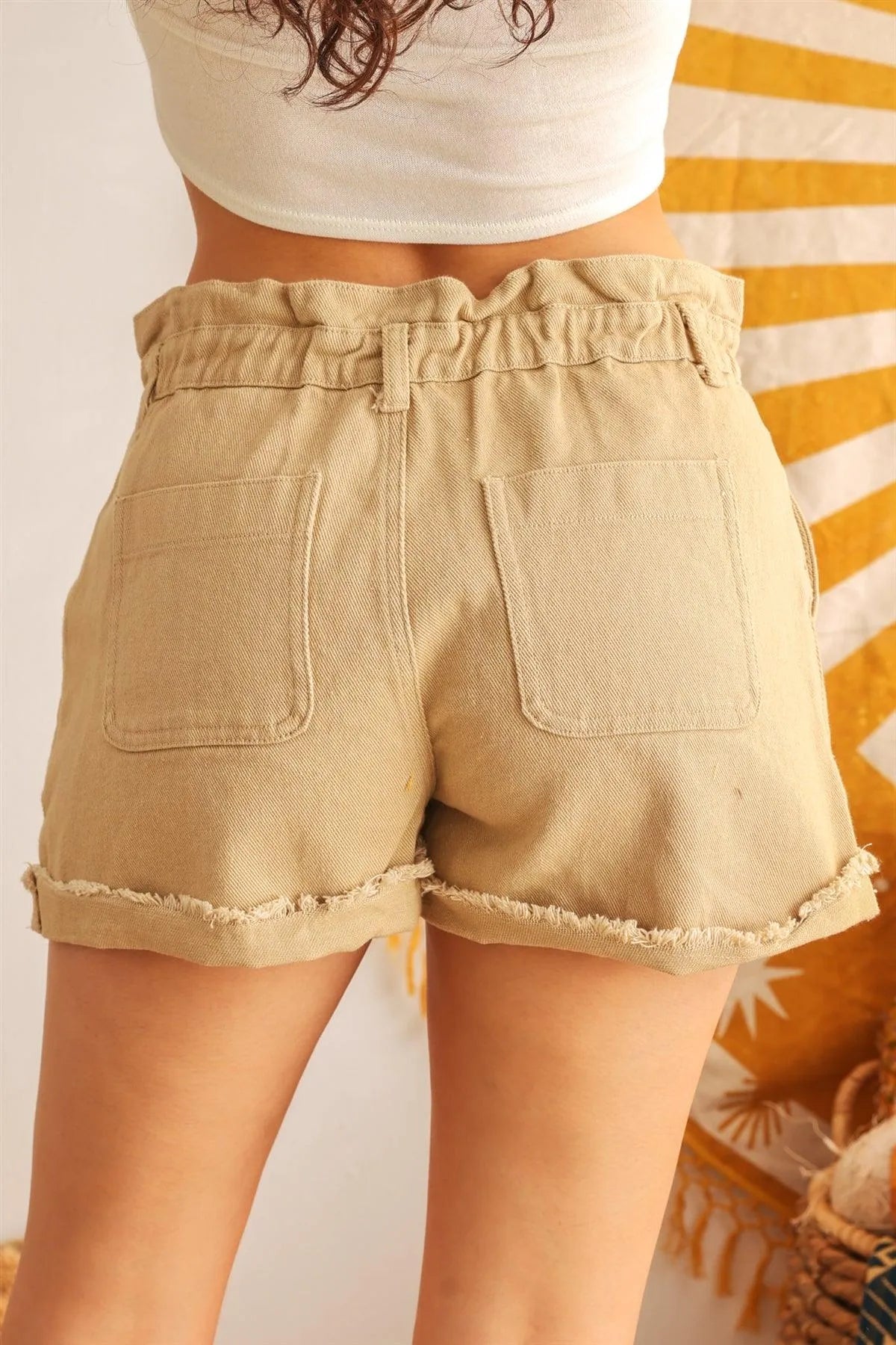 Taupe Cotton High Waist Four Pocket Shorts /2-2-2