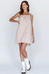 Taupe Floral Print Cotton Self-Tie Strap Mini Dress