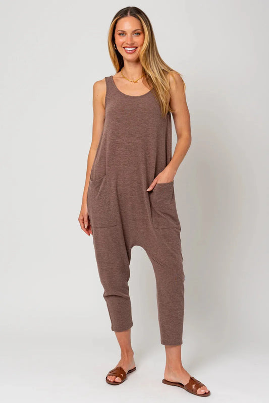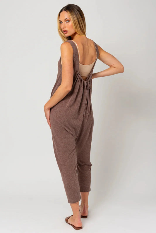Relaxed Cotton Mineral Wash Pockets Harem Lounge RomperVendor:HYFVE