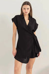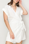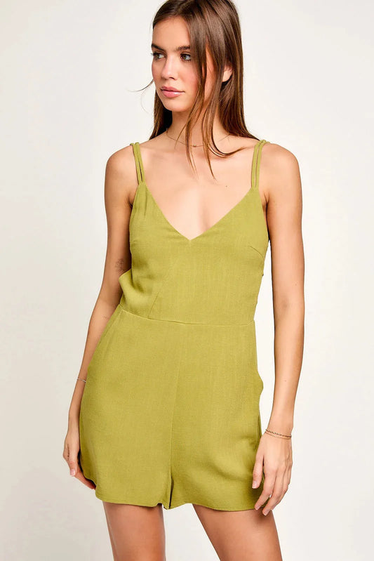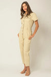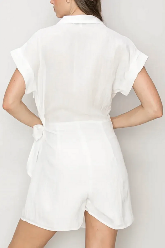 Linen Blend Button-Up Short Sleeve Belted Utility RomperVendor:HYFVE