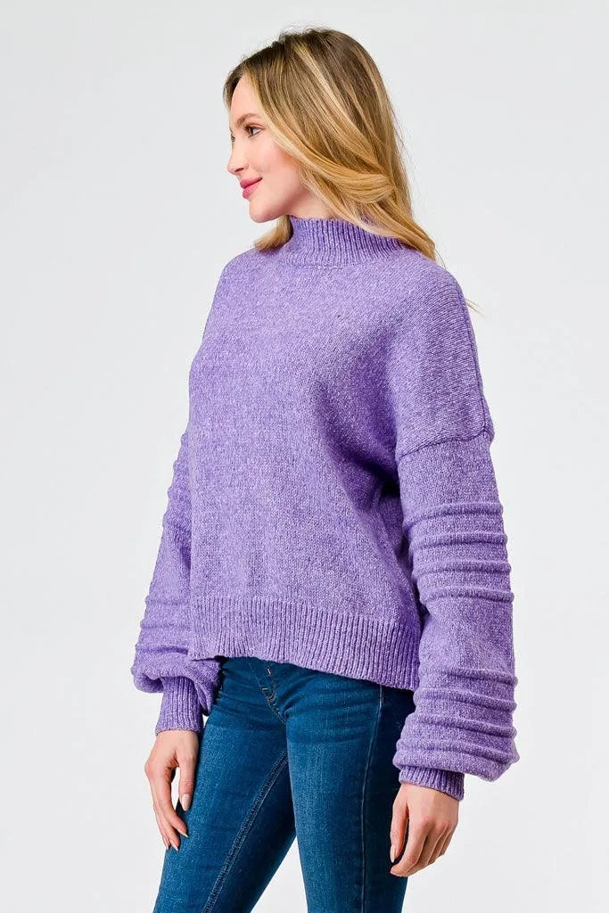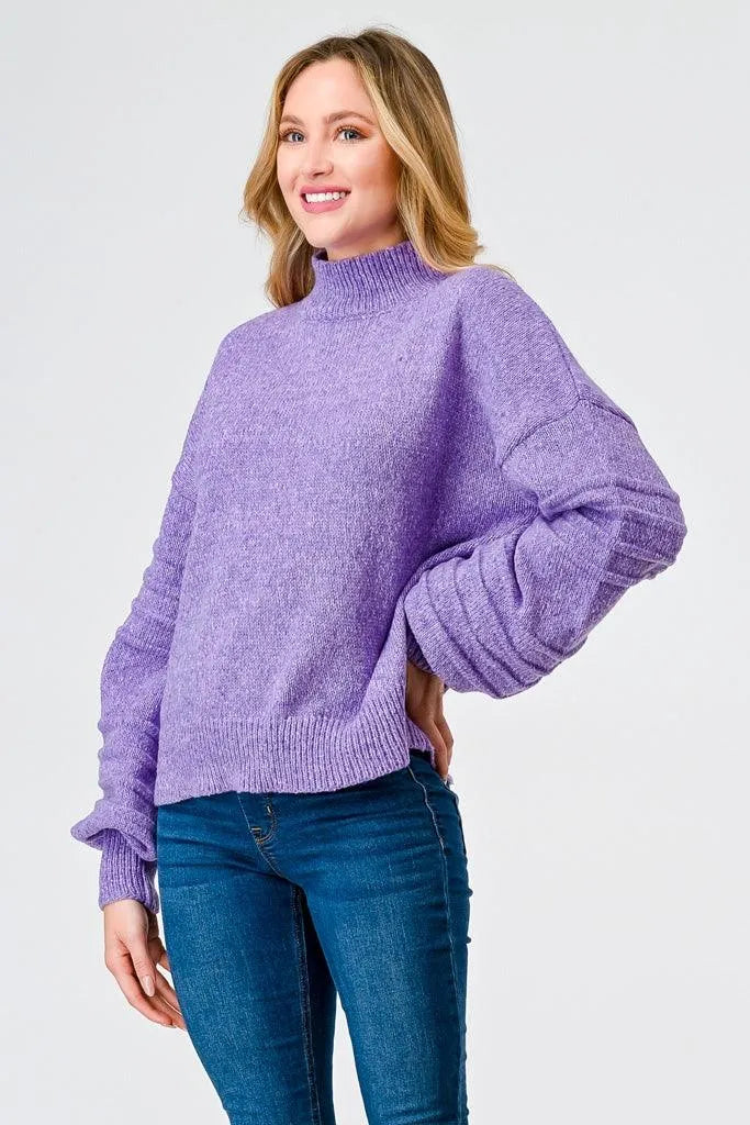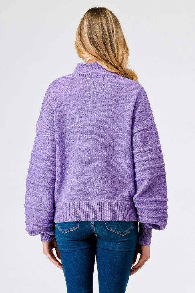 Very Peri Knit Mock Neck Lantern Sleeve Sweater /2-3-2