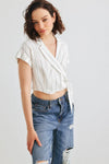 White & Black Striped Collared Wrap Neck Tie Crop Top /2-2-2