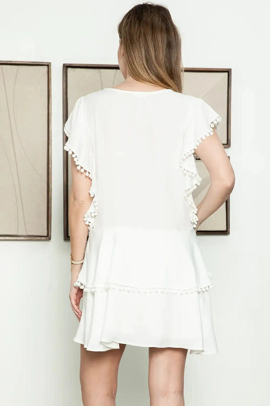 Boho Tiered Babydoll Short Sleeve Fringe String Casual Boutique Summer DressVendor:Jade by Jane