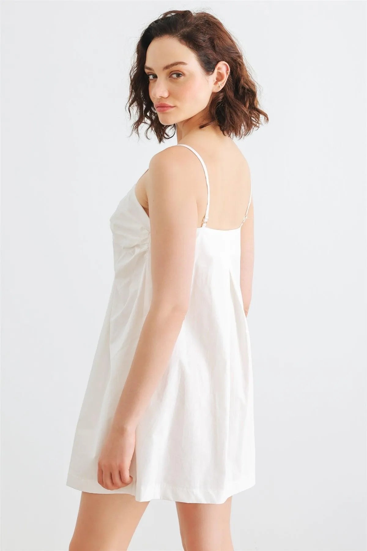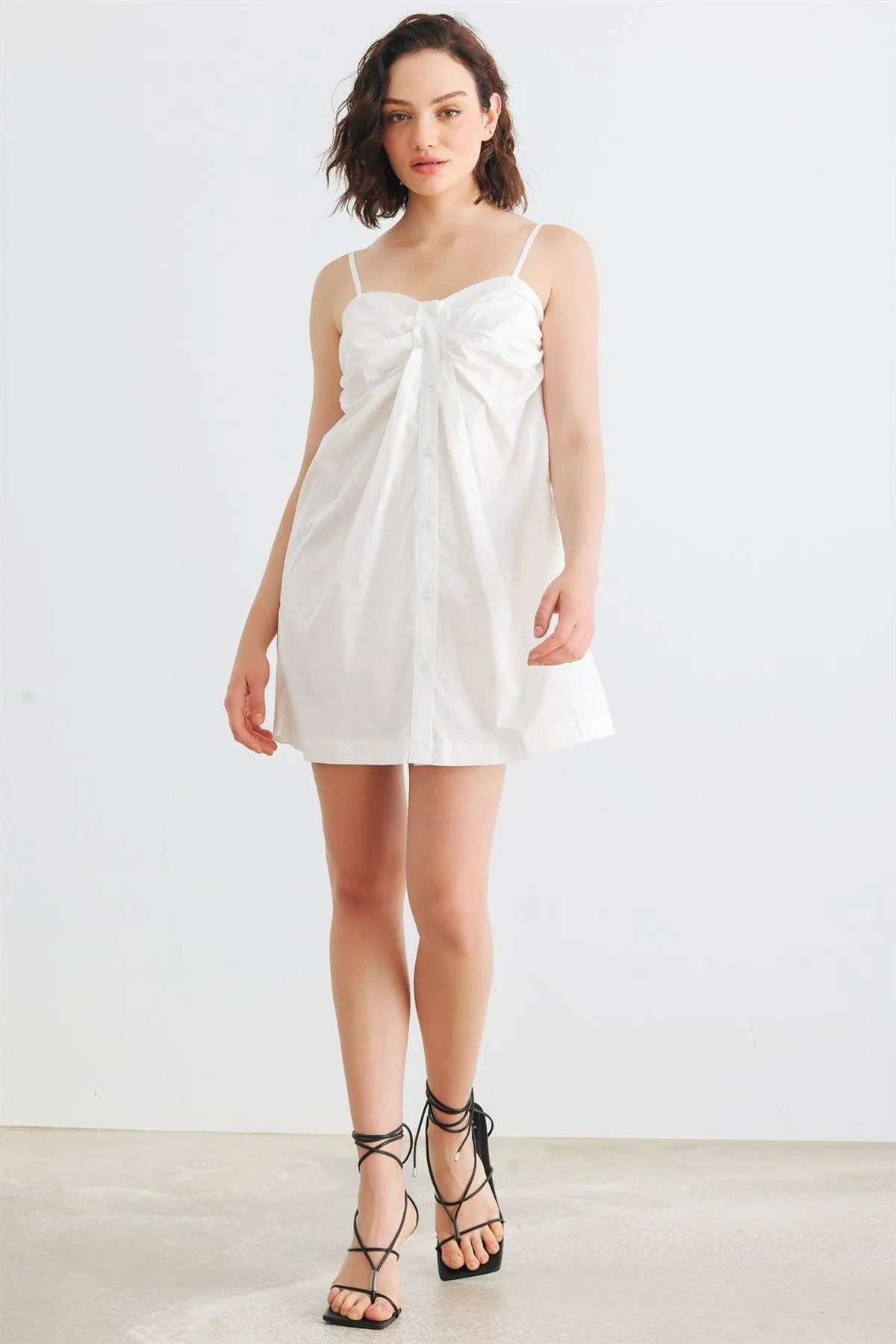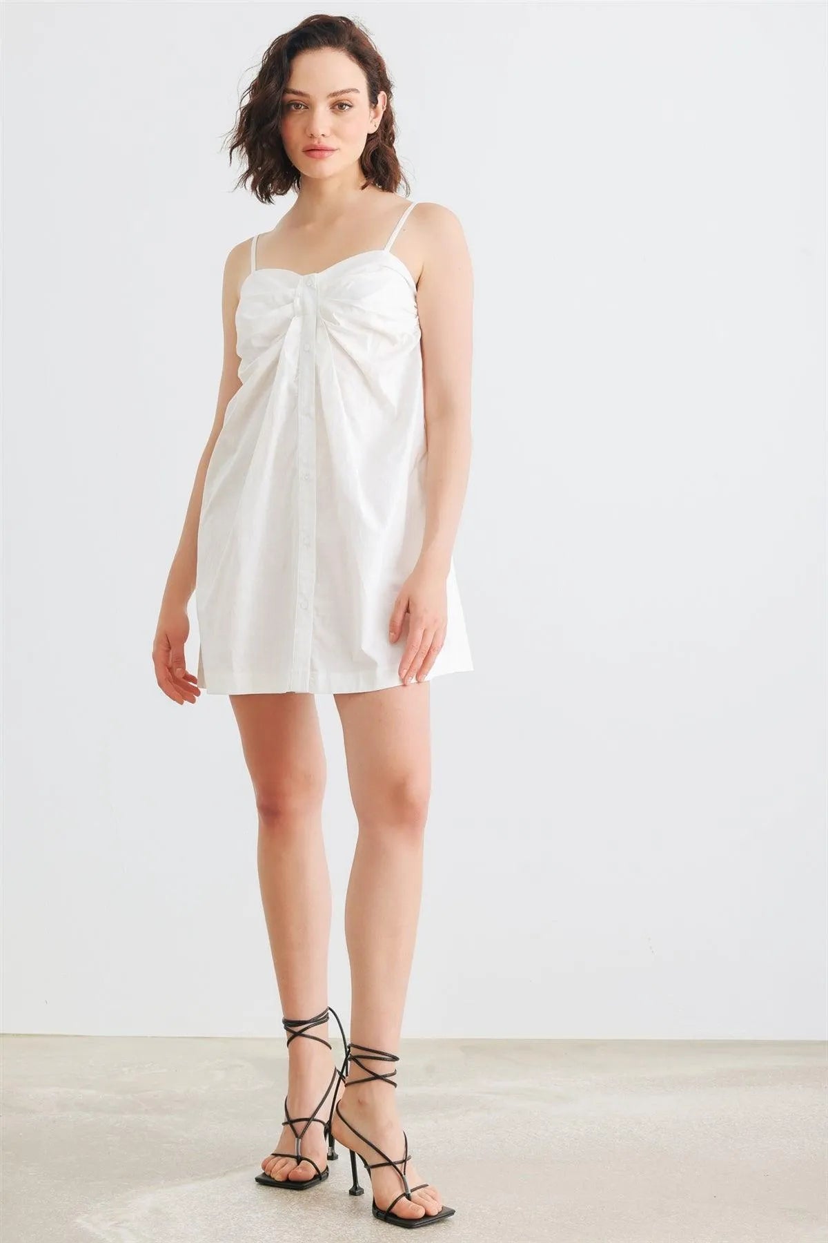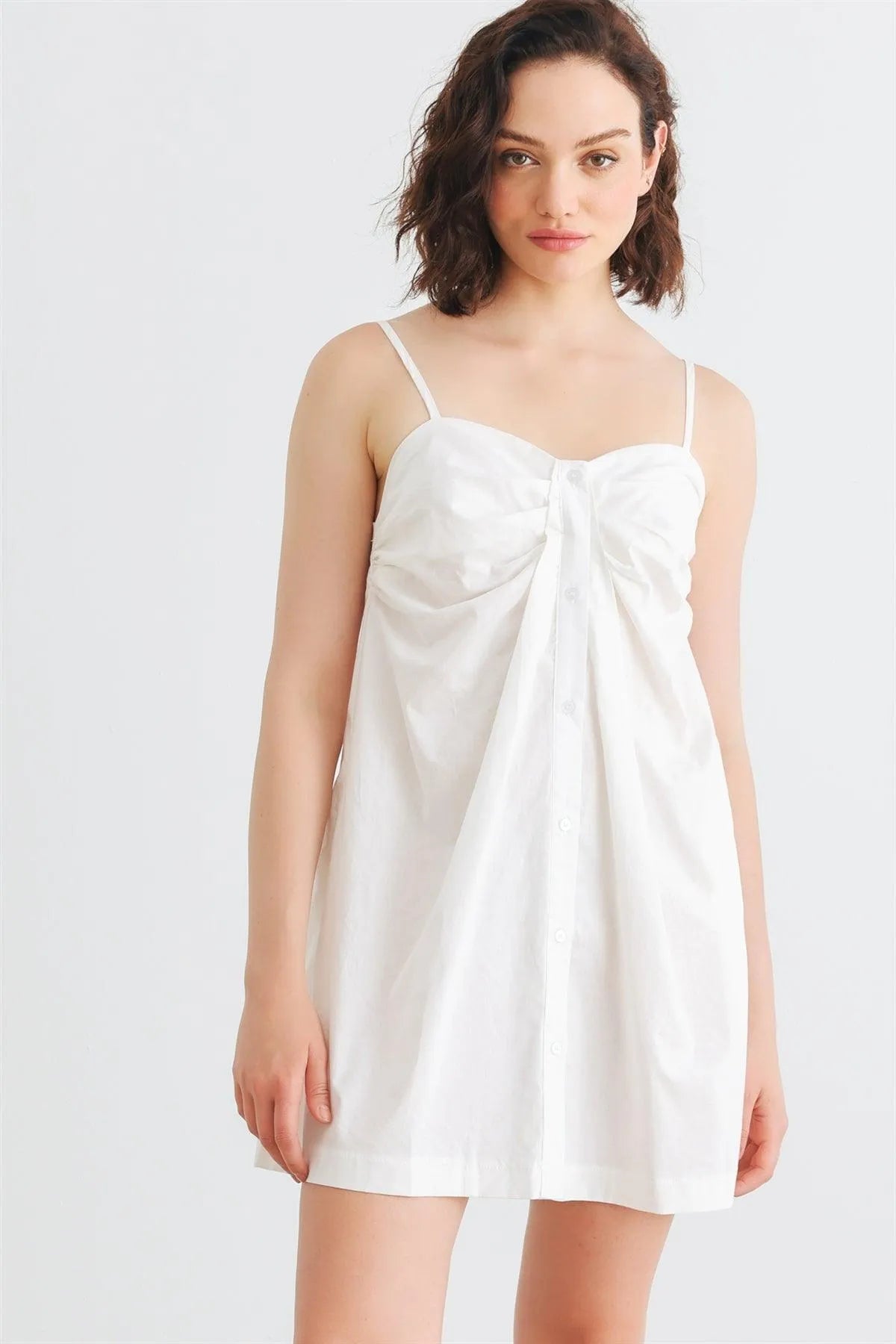 White Cotton Sleeveless Button-Up Strappy Mini Dress /1-2-2-1