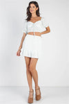 Romantic Swiss Dot Ruffled Square Neck Two-Piece Mini Skirt SetVendor:Mustard Seed