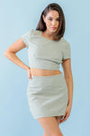 White & Green Plaid Cotton Open Back Crop Top & High Waist Mini Skirt Set /3-2-1