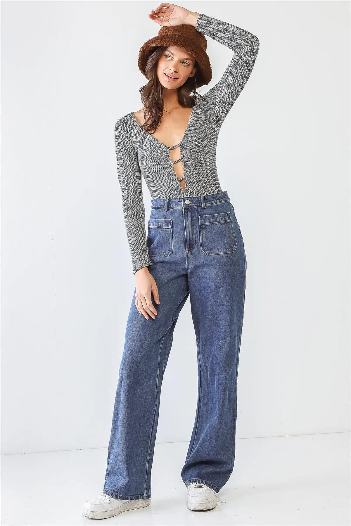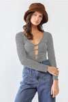 This Long sleeve bodysuit features a unique white and heather green color combination and cut-out design. Made from high-quality materials, this bodysuit is both trendy and comfortable. Perfect for a night out or a casual day, this bodysuit is sure to make a statement.