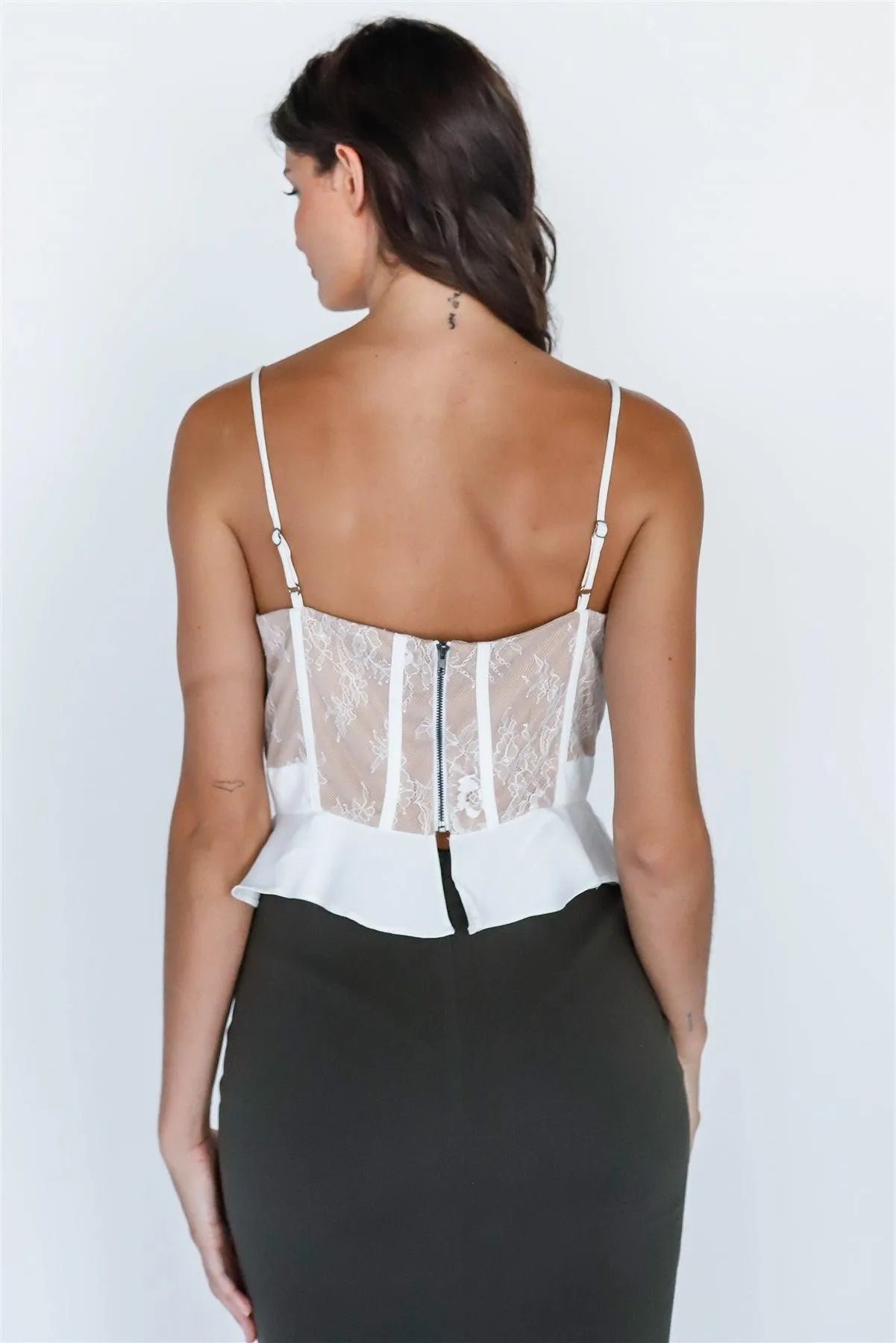White Lace Flare Hem Bustier Crop Top /2-1-2