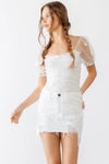 🖤 Item Features: White, organza, mesh, sequins, butterfly embroidery, square neckline, back zip-up & eye closure, puff short sleeves, thong double snap closure, non-stretchy, lined, cute, cool, must-have, girlish