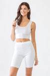 White Ribbed High Waist Slim Fit Stretchy Shorts