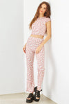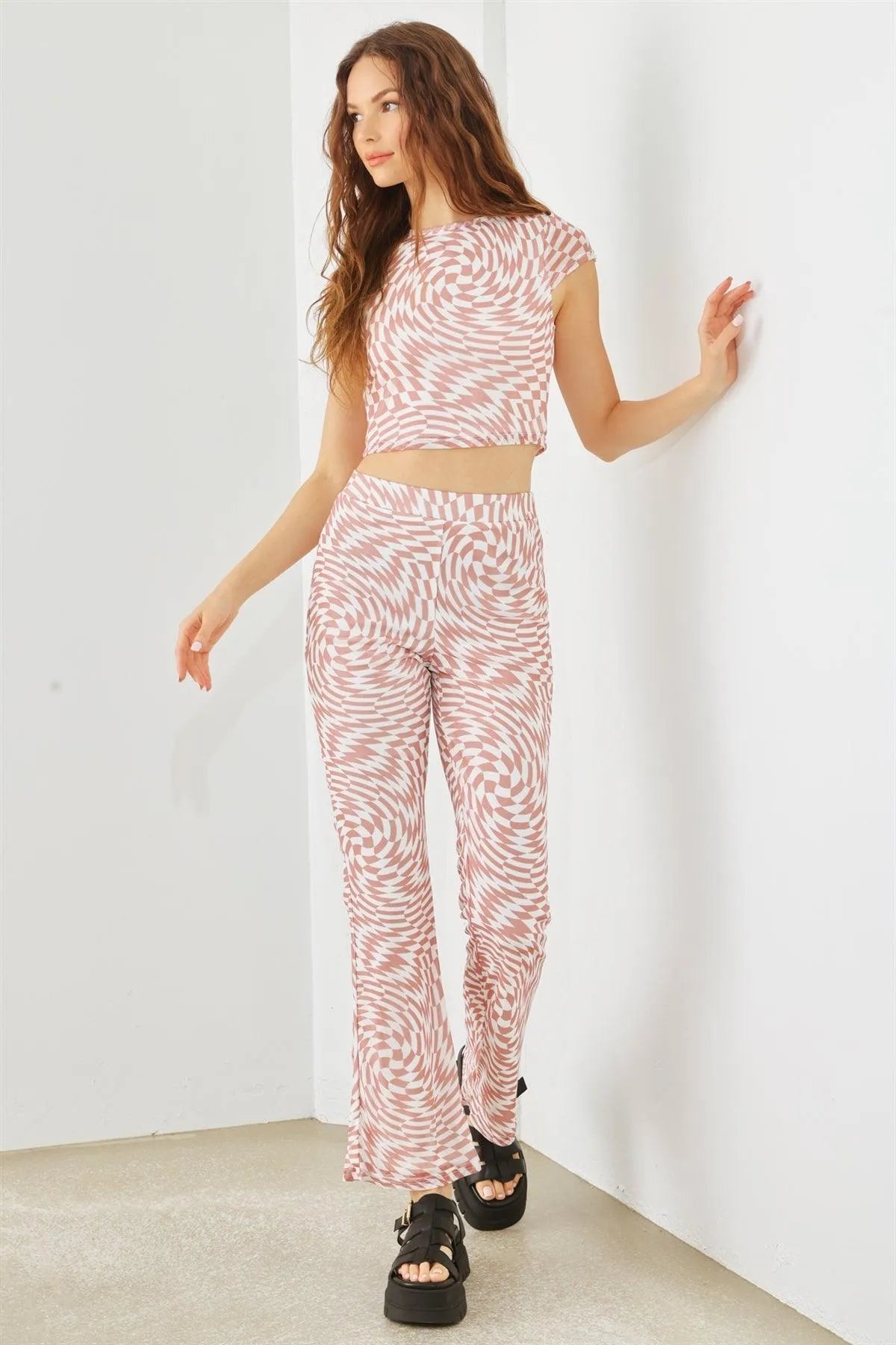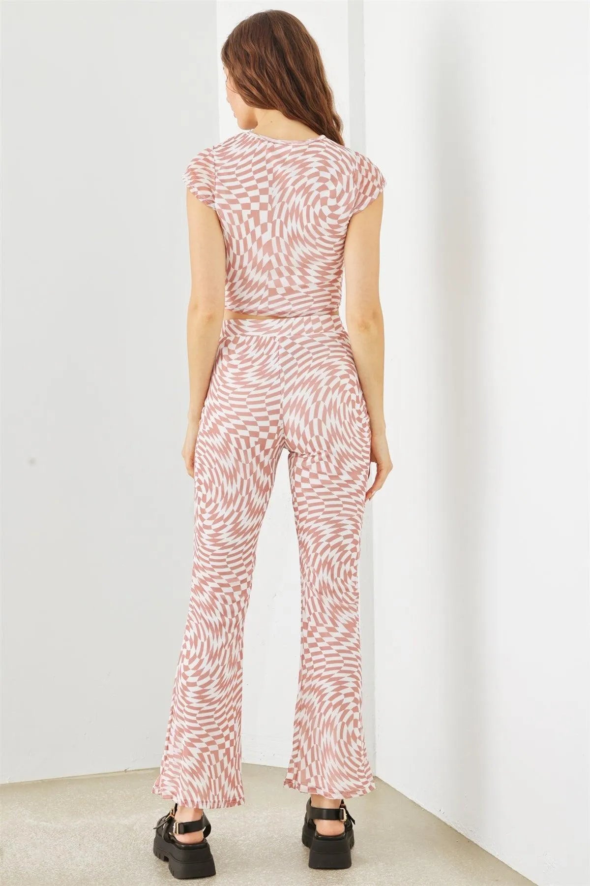 Abstract Mesh Short Sleeve Crop Top & High Waist Pants Set