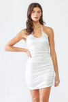 White Satin Ruched Halter Neck Strappy Mini Dress /3-2-1