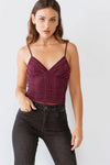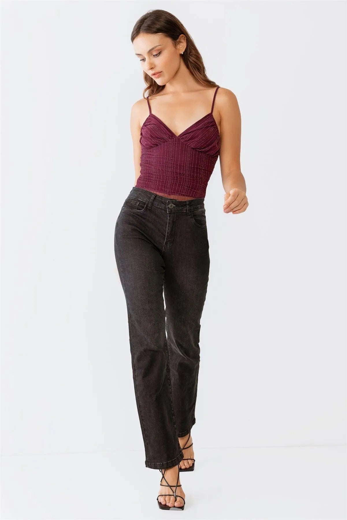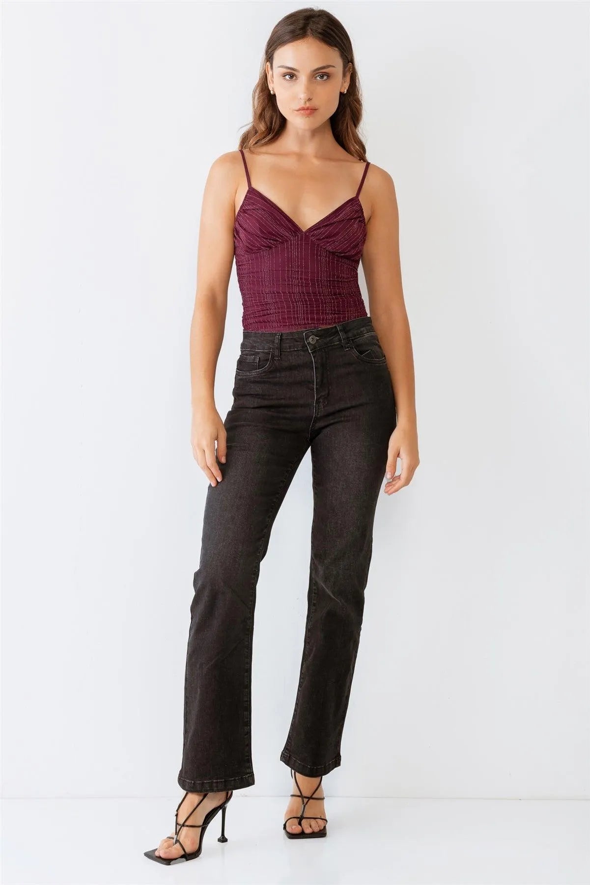 Wine Shiny Mesh Ruched Sleeveless Bodysuit /2-2