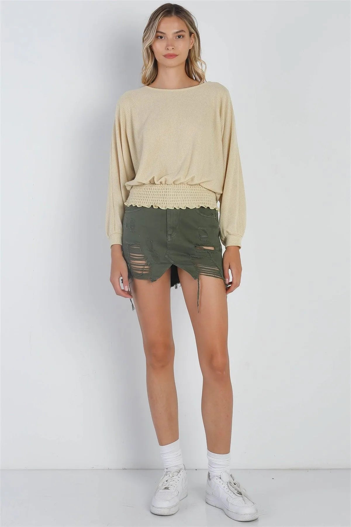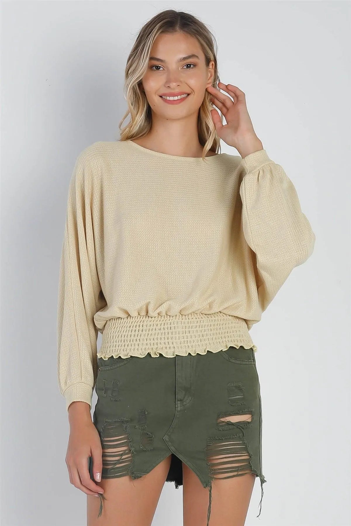 Yellow Waffle Knit Long Sleeve Smocked Hem Top /1-2-2