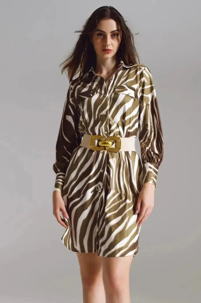 Sage Zebra Print Animal Print Long Sleeve Mini Dress