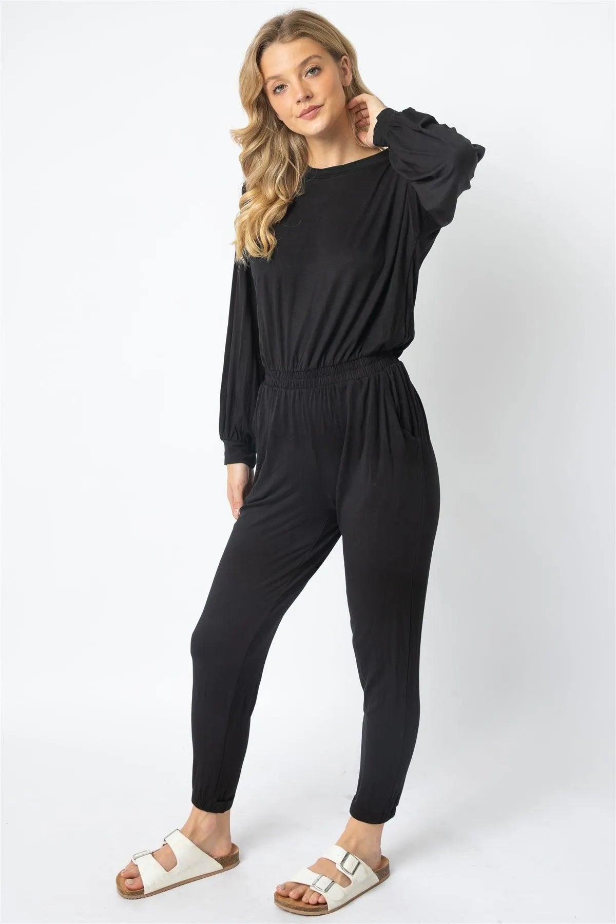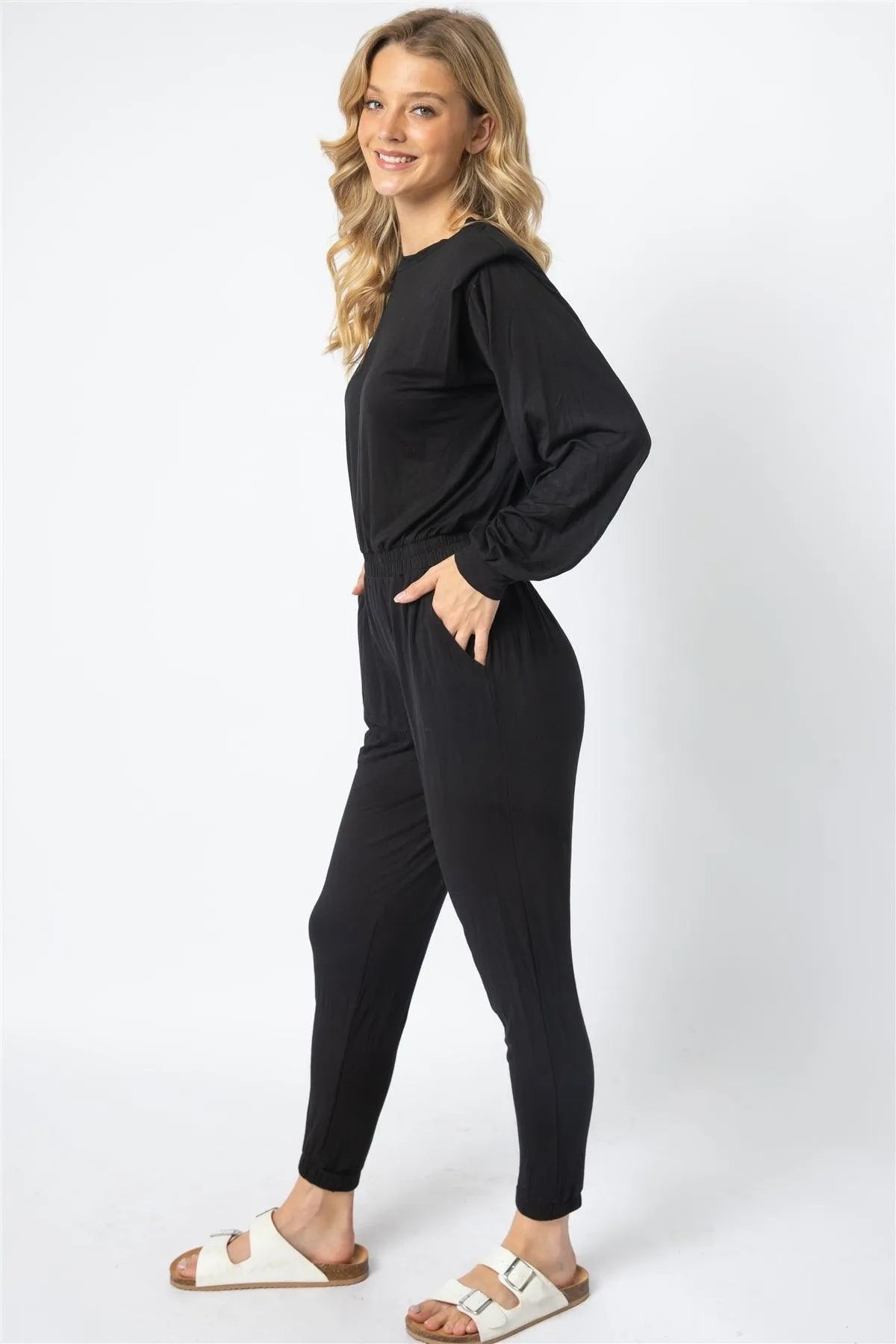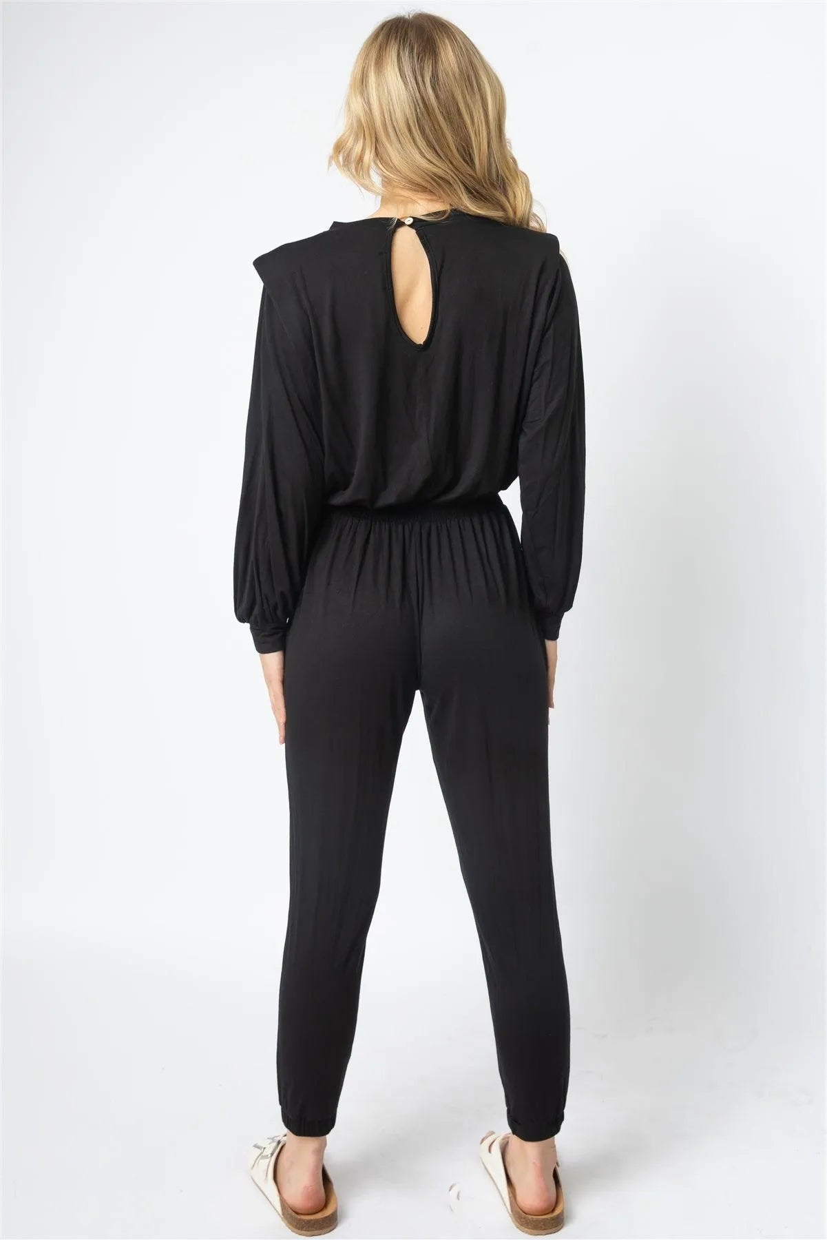 Black Shoulder Pad Long Sleeve Jumpsuit