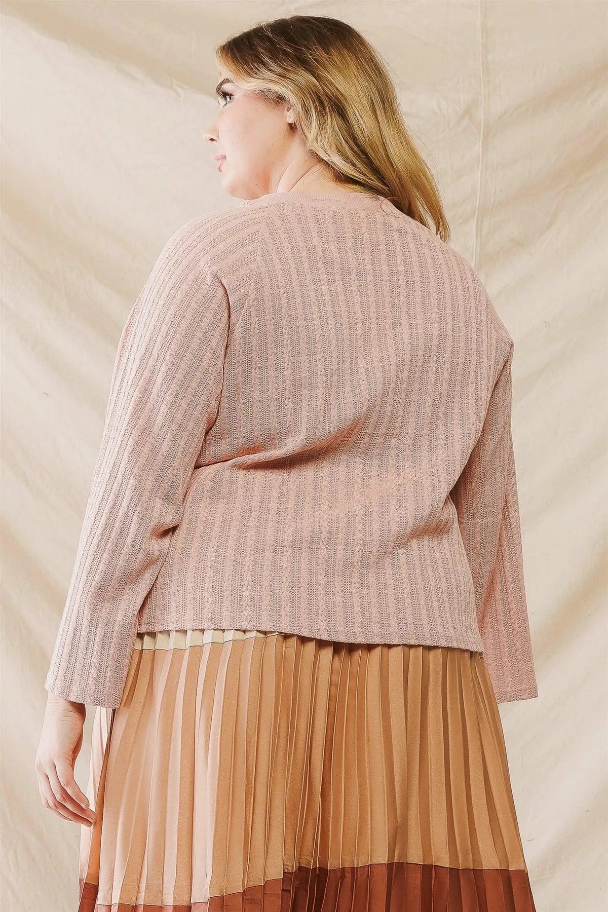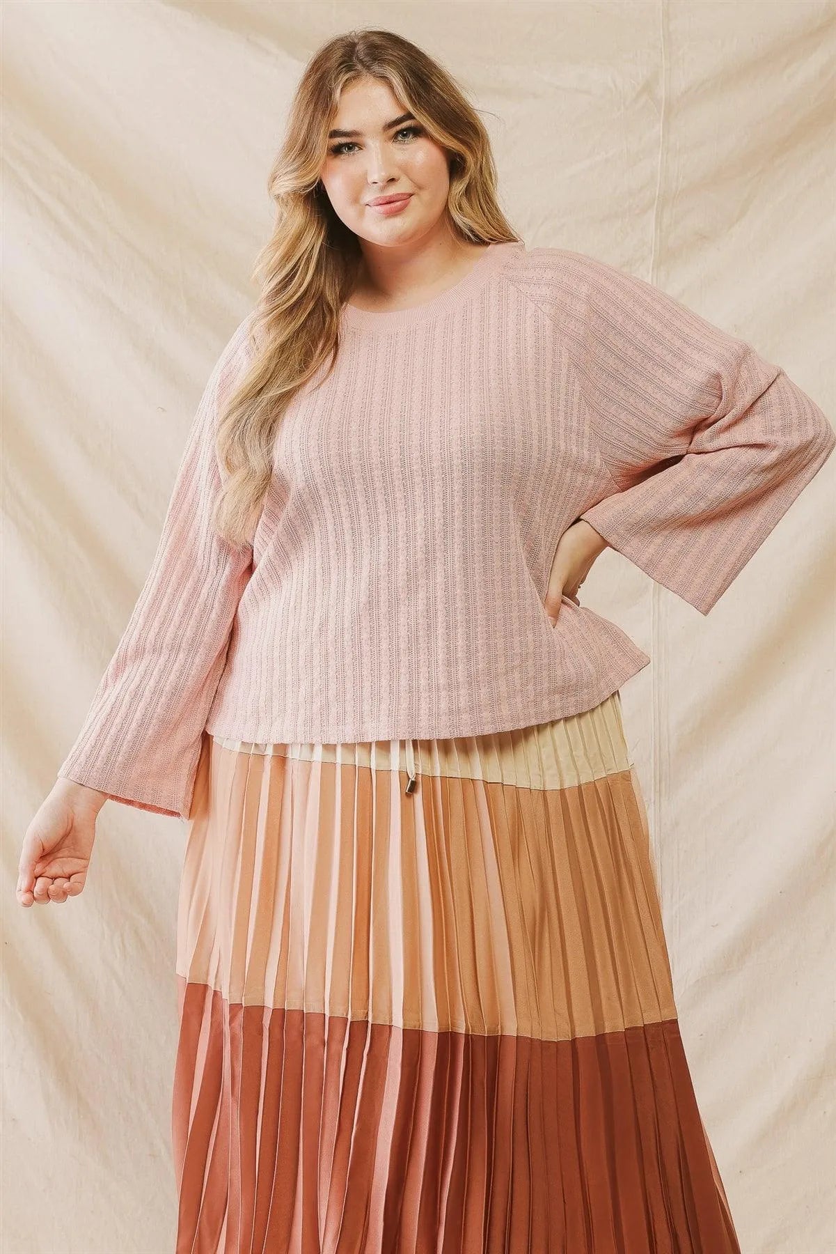Junior Plus Blush Knit Long Sleeve Top /3-2-1