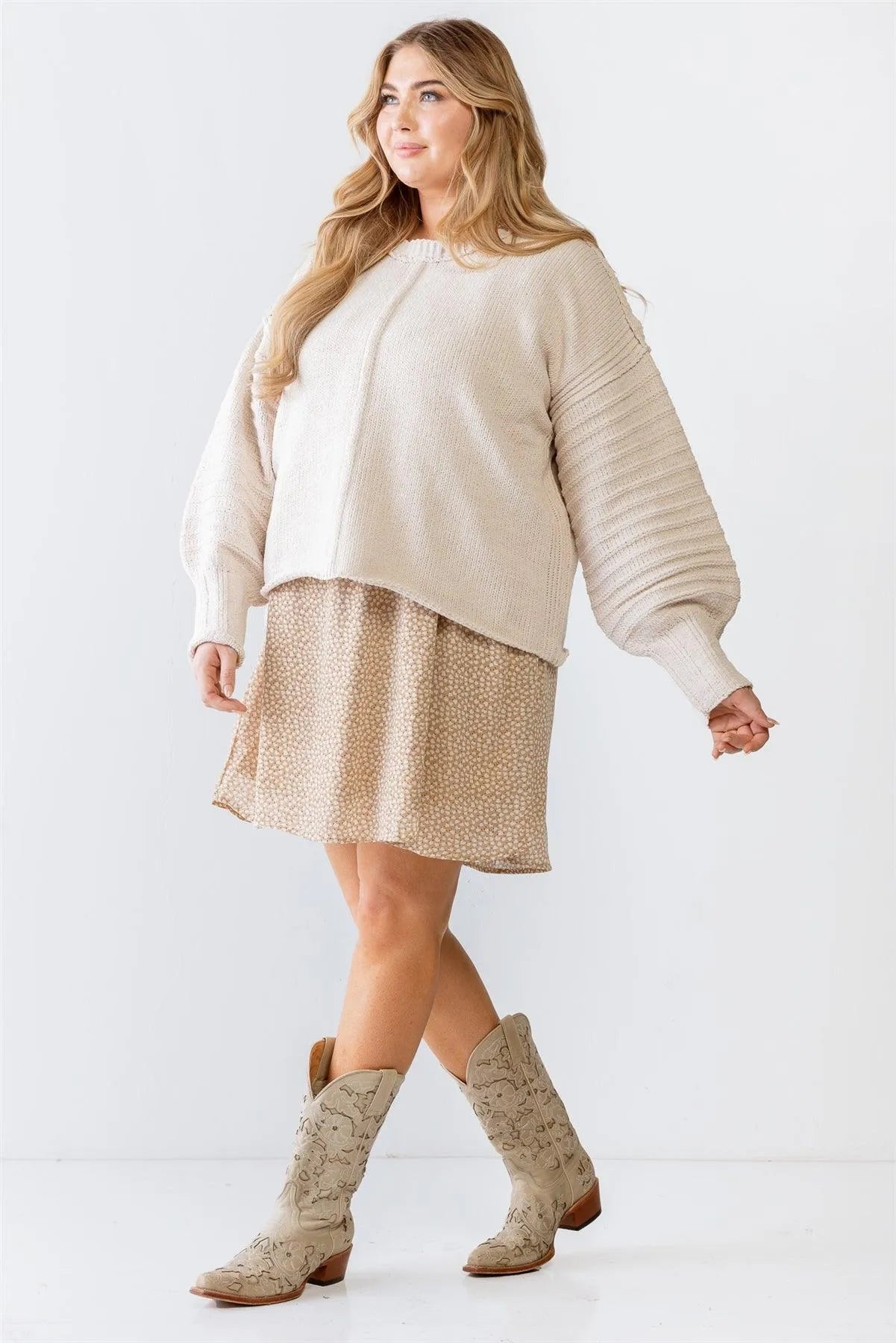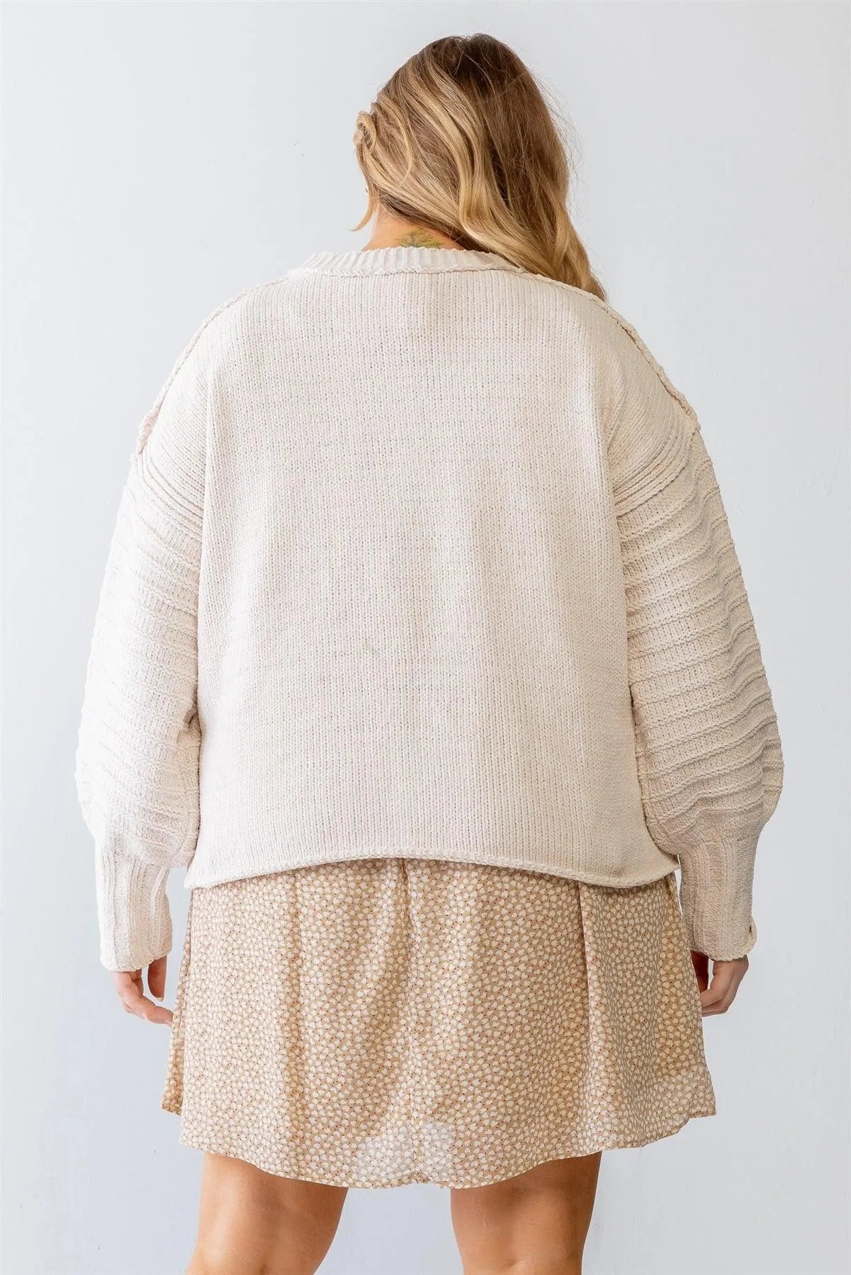 Junior Plus Cream Knit Inside-Out Long Sleeve Sweater /3-2-1