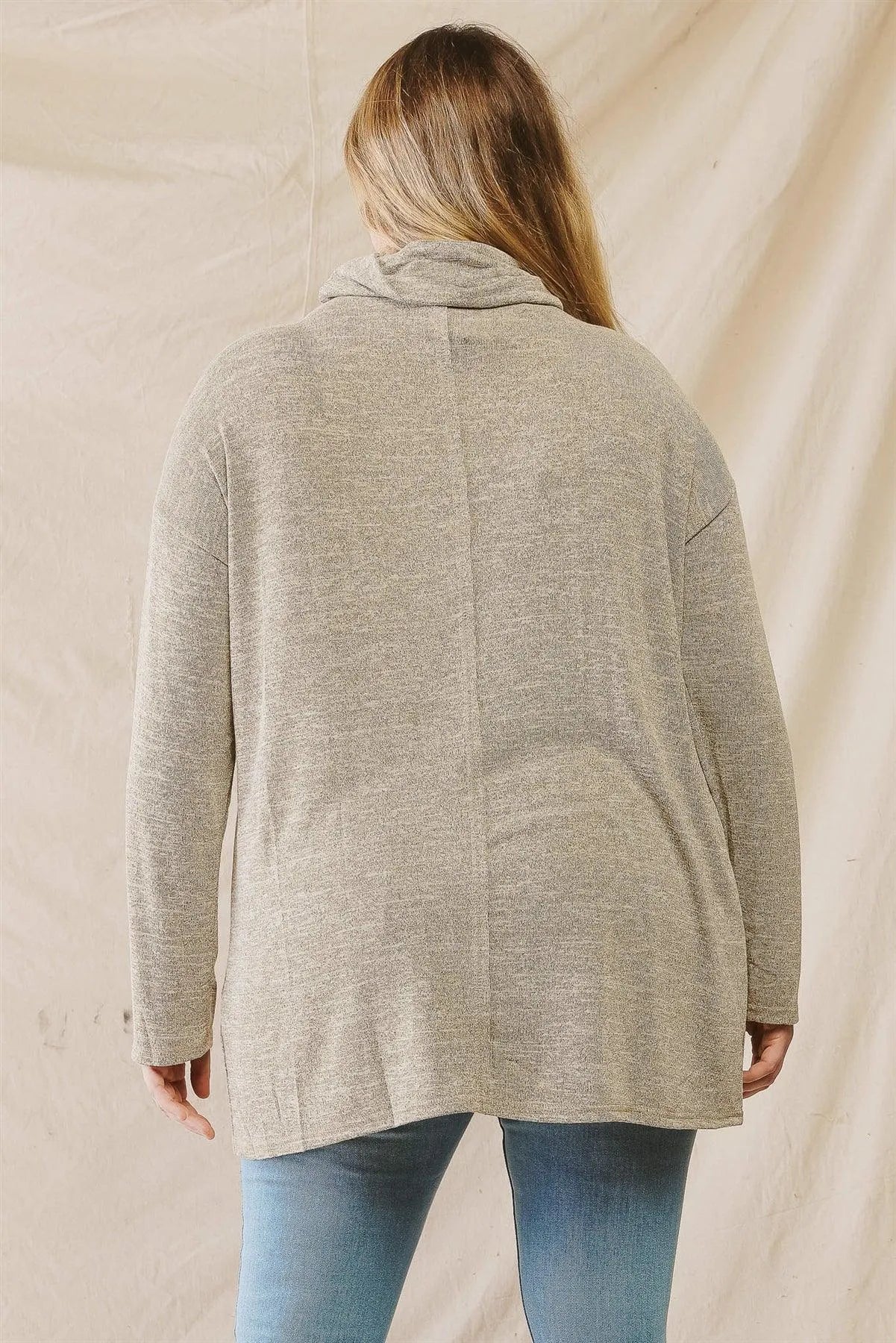 Junior Plus Taupe Turtle Neck Wrap Hem Long Sleeve Top /2-2-1