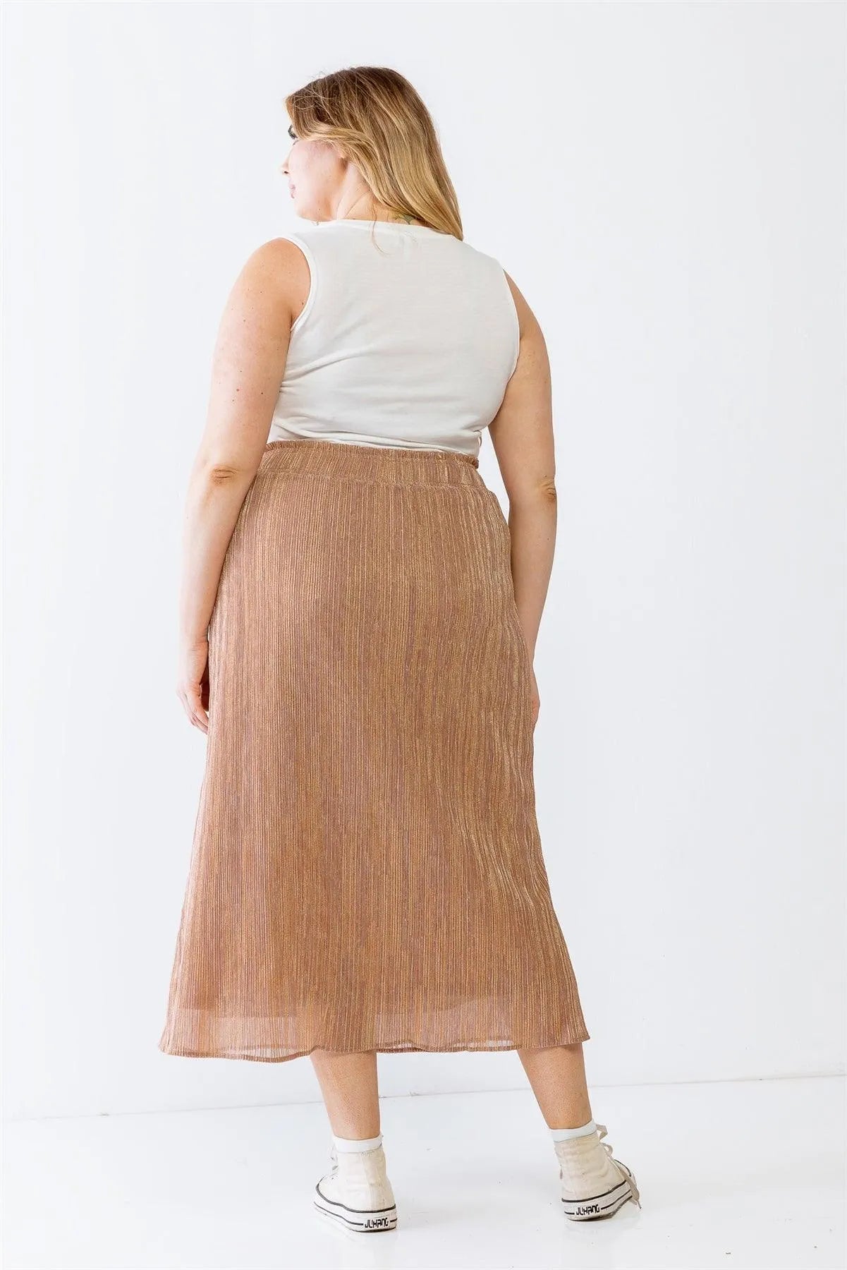 Junior Plus Rose & Gold Shiny String Elasticized High Waist Midi Skirt /3-2-1