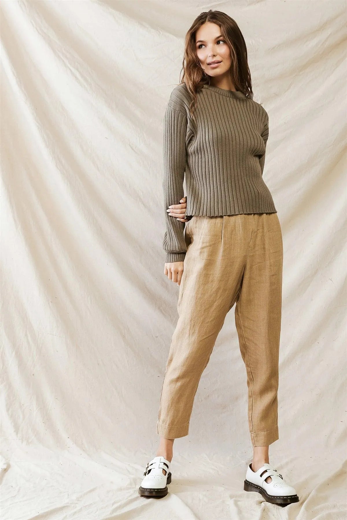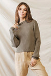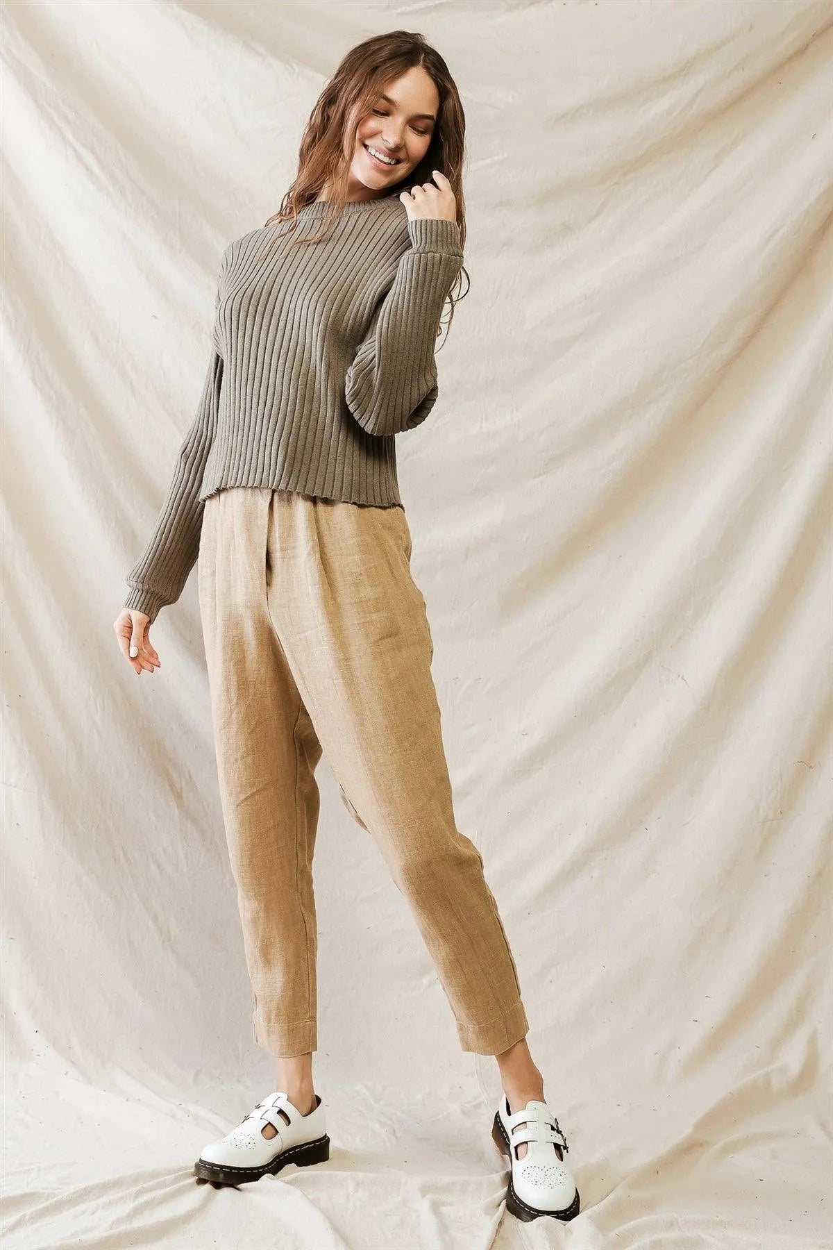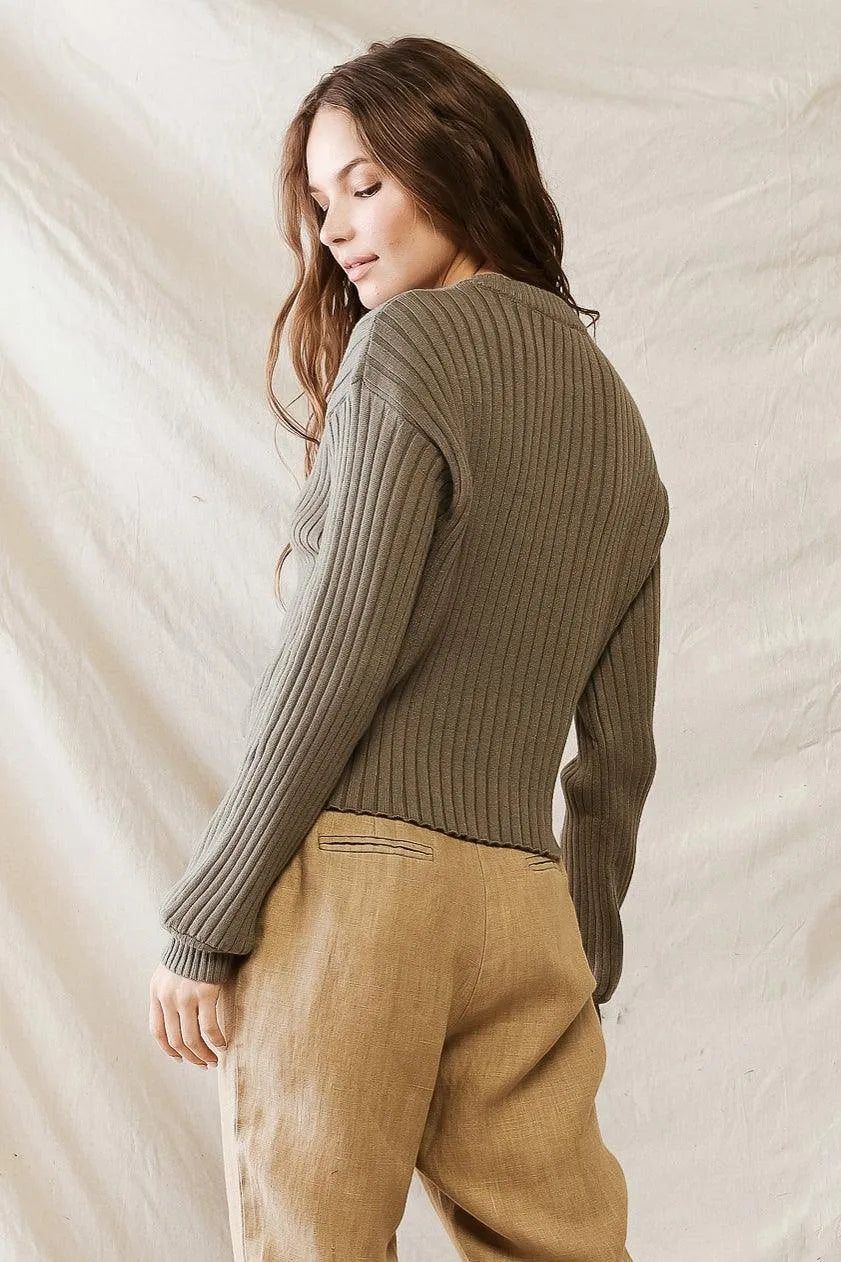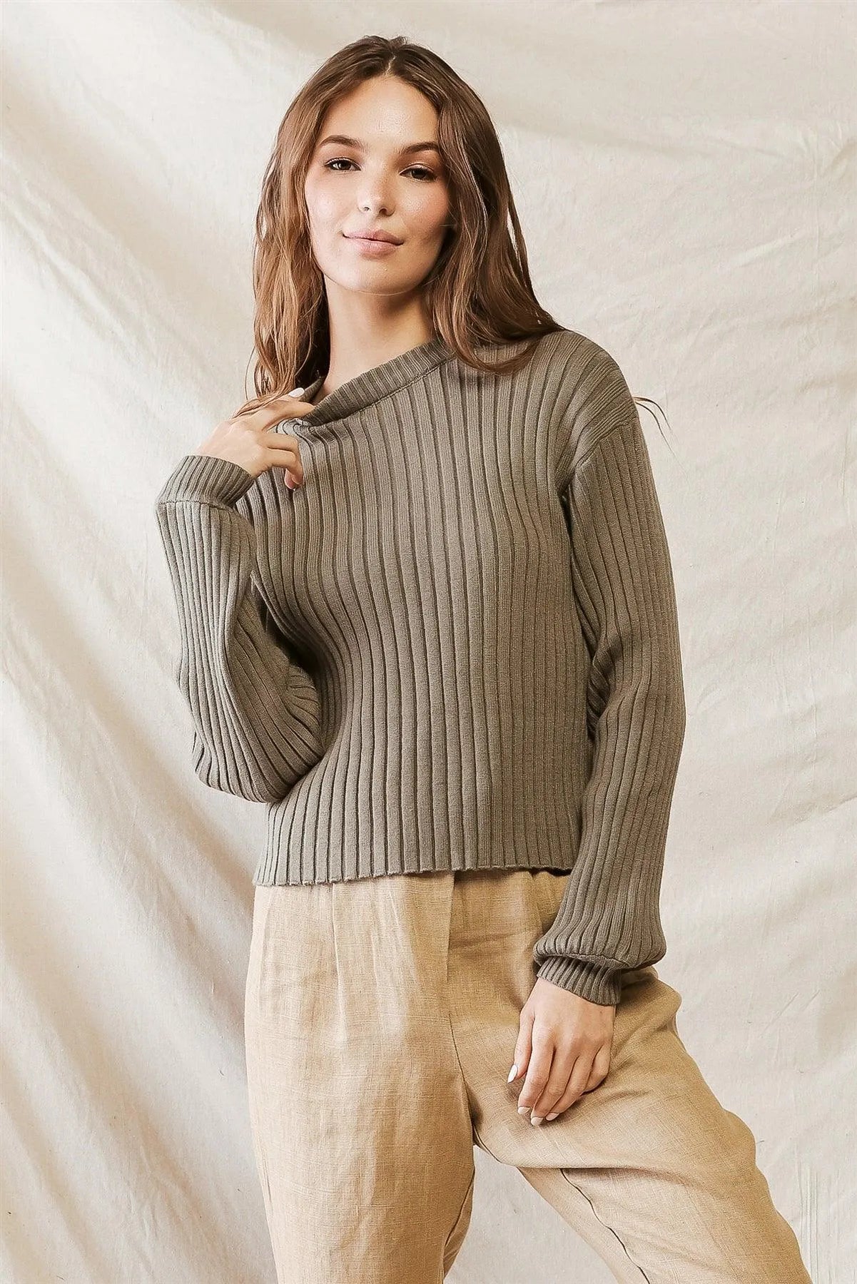 Olive Knit Ribbed Crew Neck Long Sleeve Sweater /1-4-1