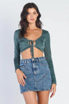 Teal Satin Effect Self-Tie Long Sleeve Crop Top /3-2-1