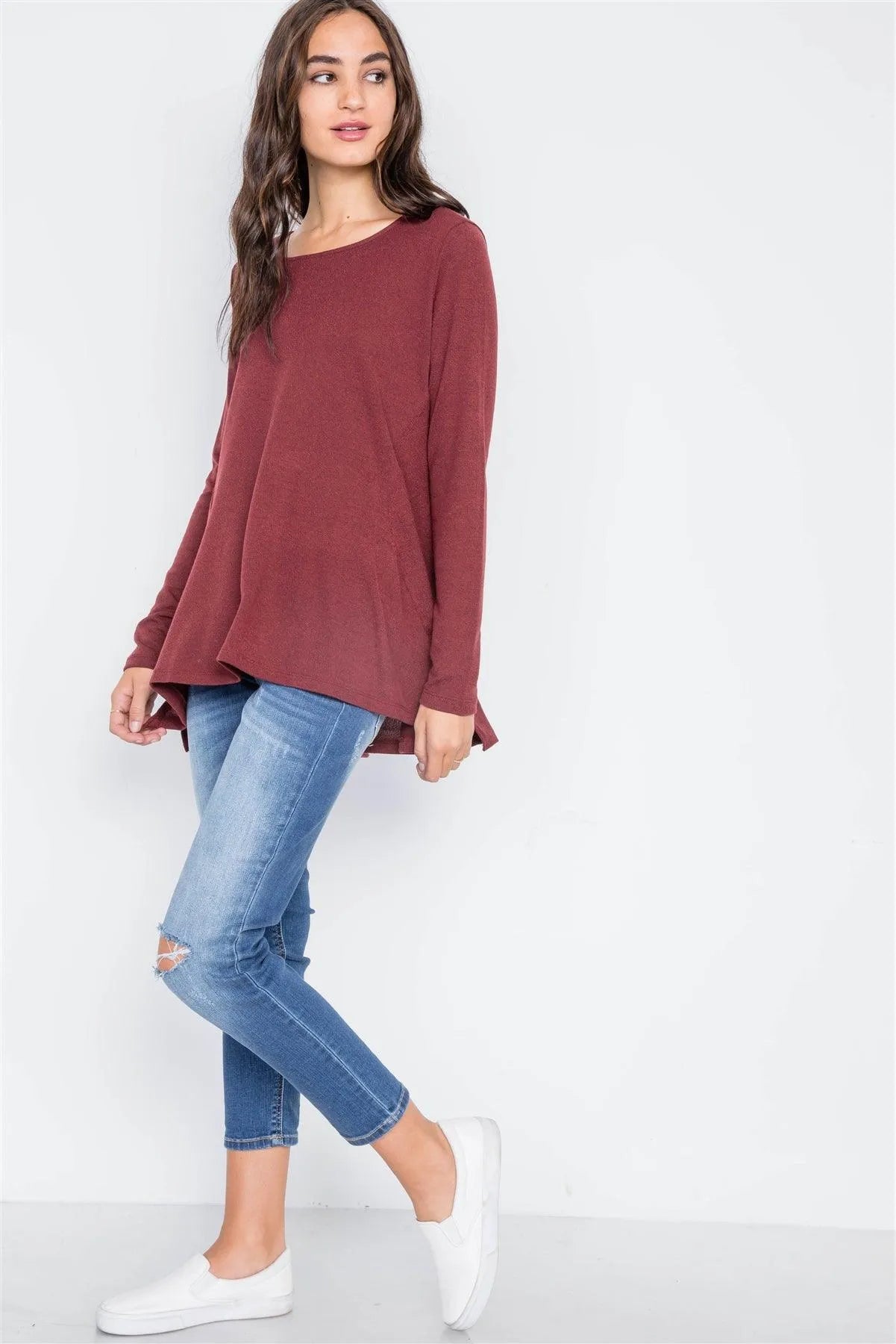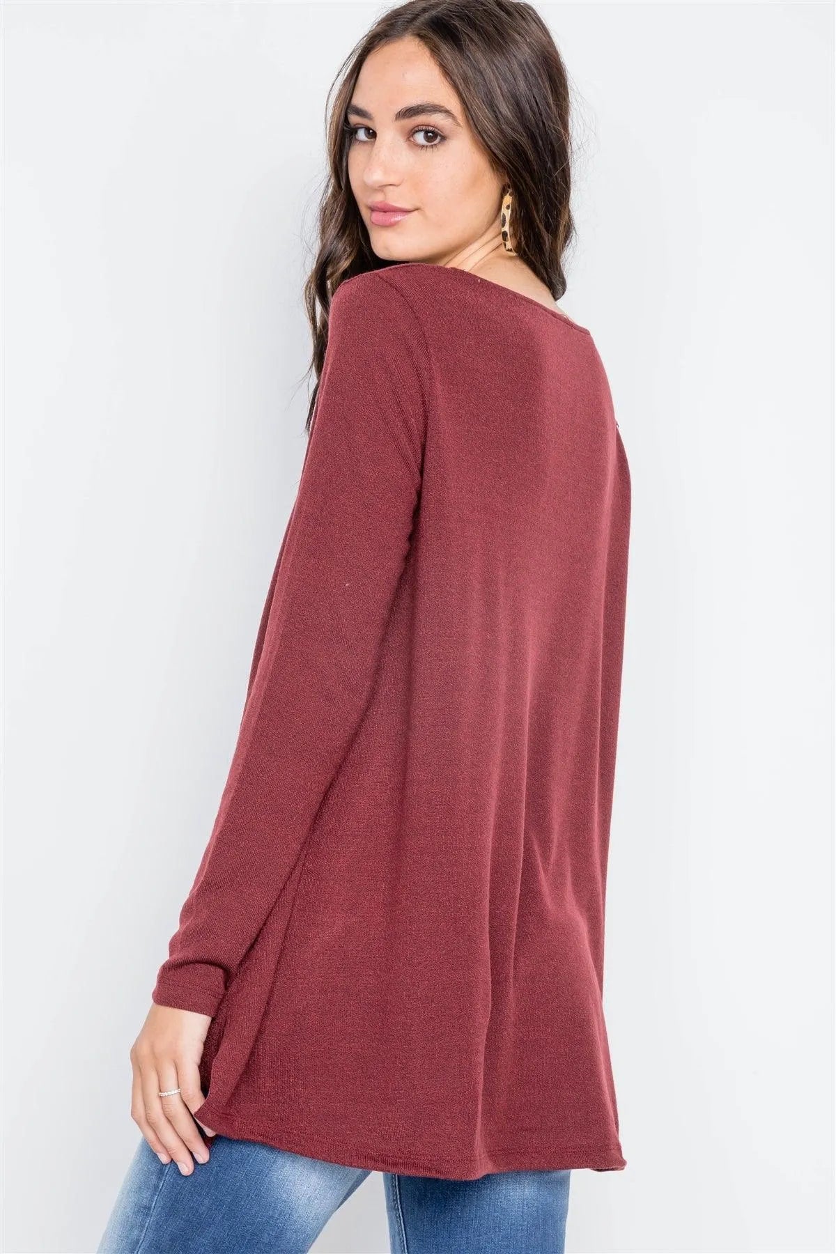 Wine Long Sleeve Loose Fit Solid Top /2-2