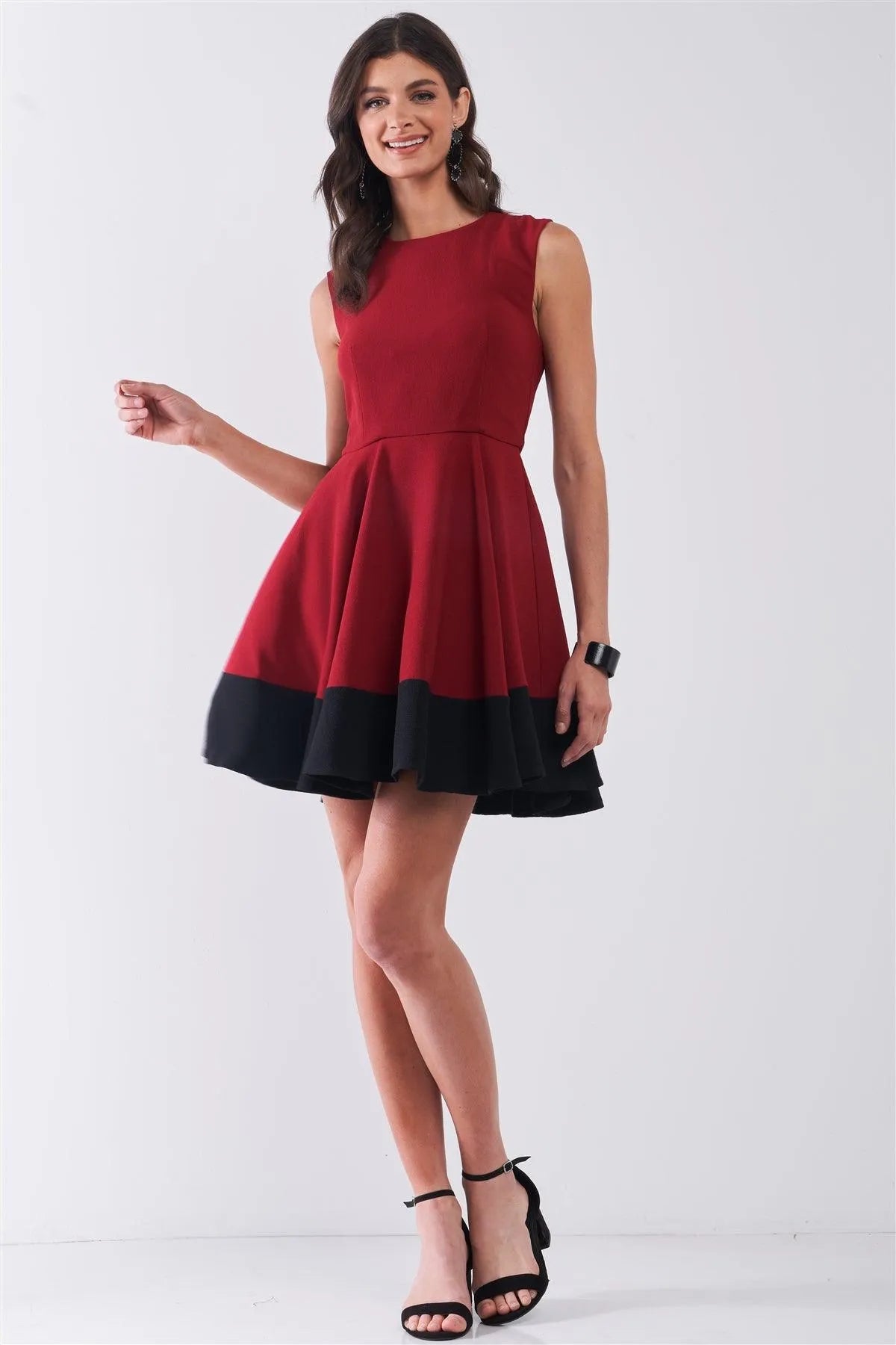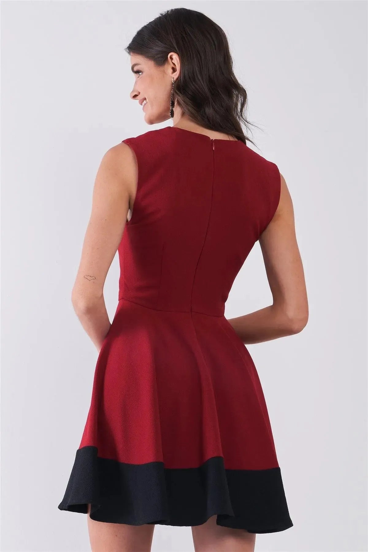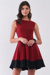 Wine Red & Black Hem Detail Sleeveless A-Line Flare Mini Dress /2-3-1