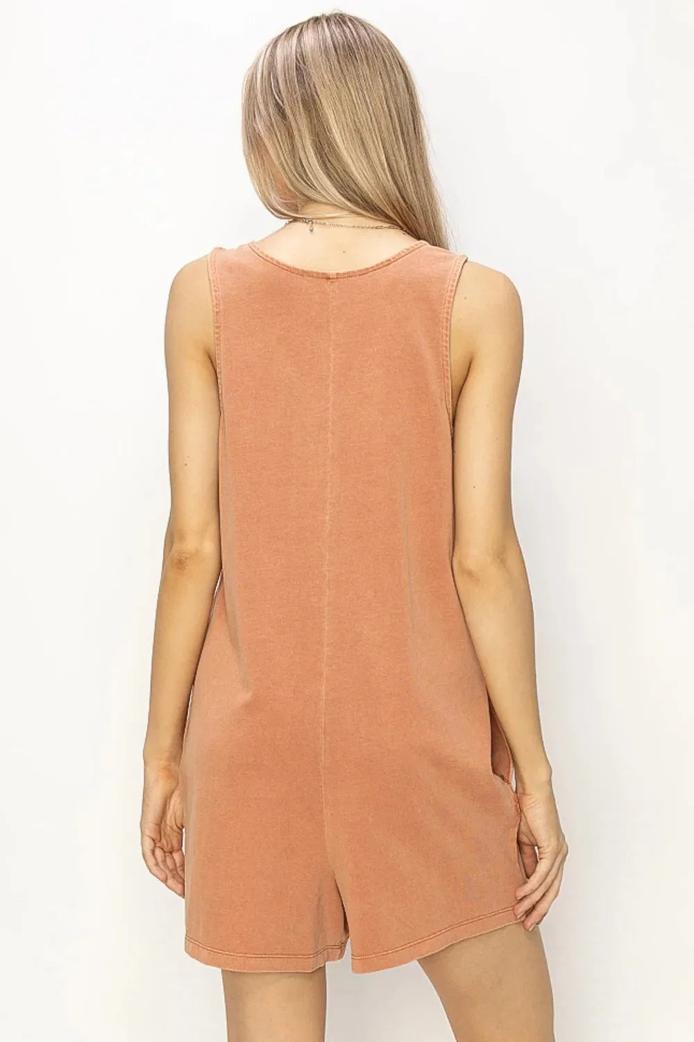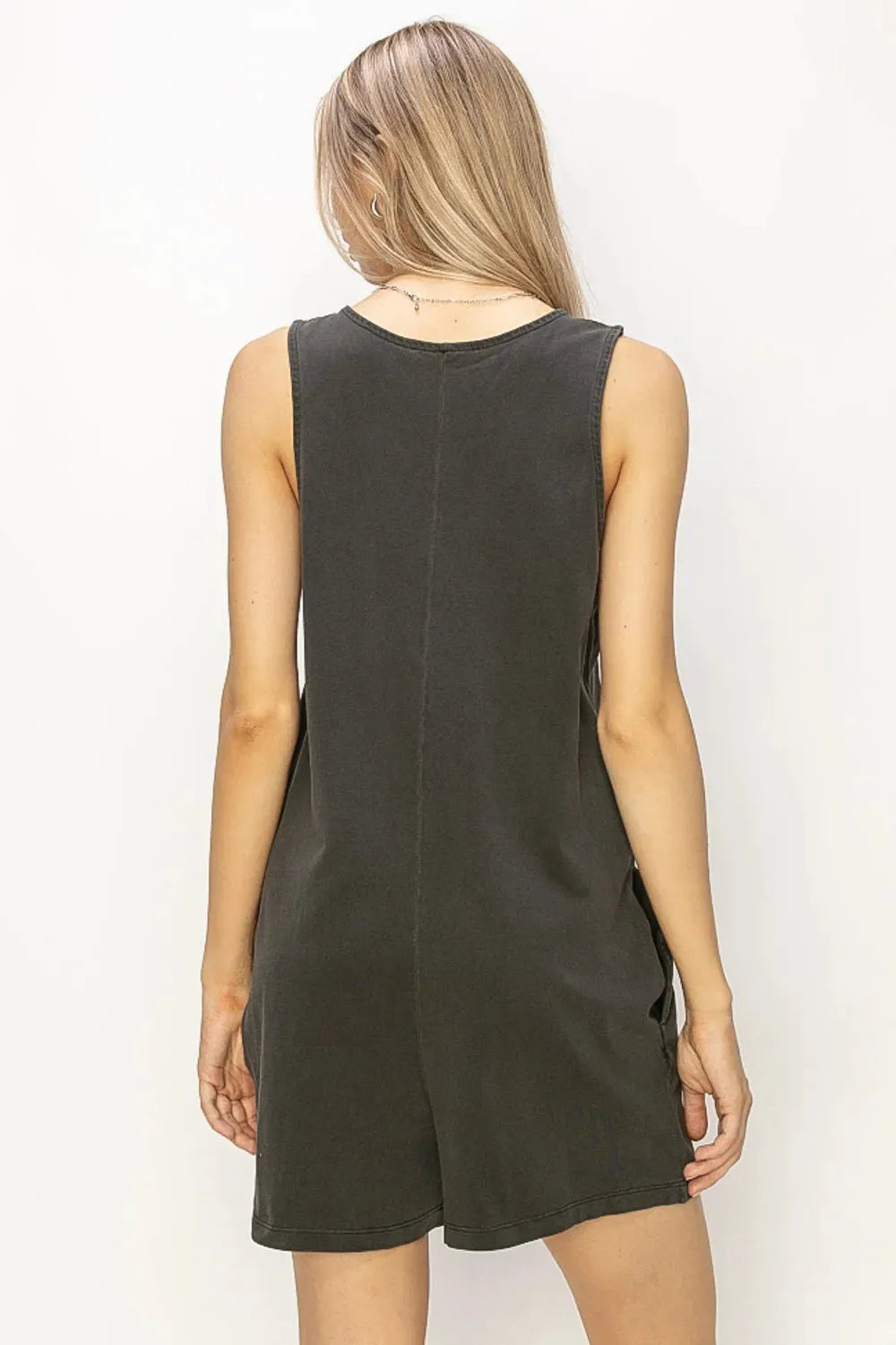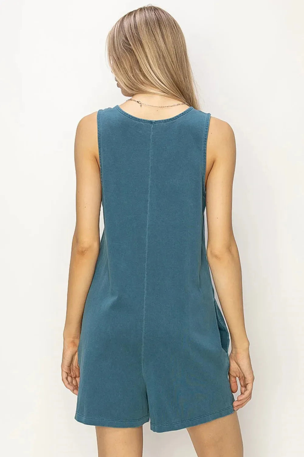 Relaxed Cotton Mineral Wash Pockets Harem Lounge RomperVendor:HYFVE