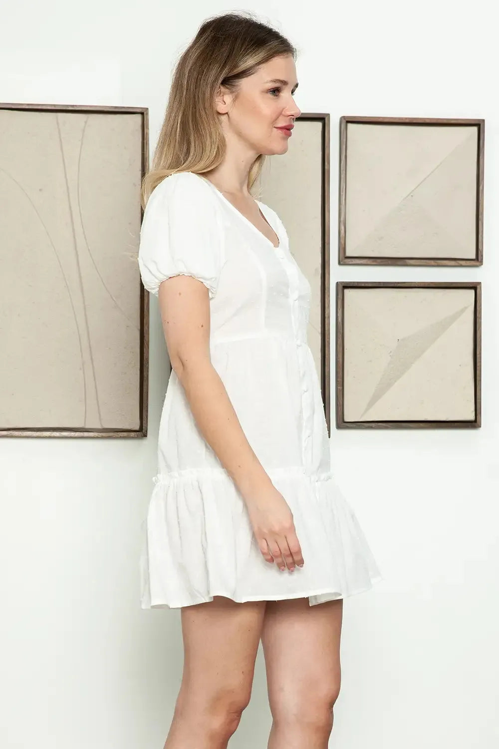 Western Boho Cap Sleeve Flare Textured Front Button Mini Dress